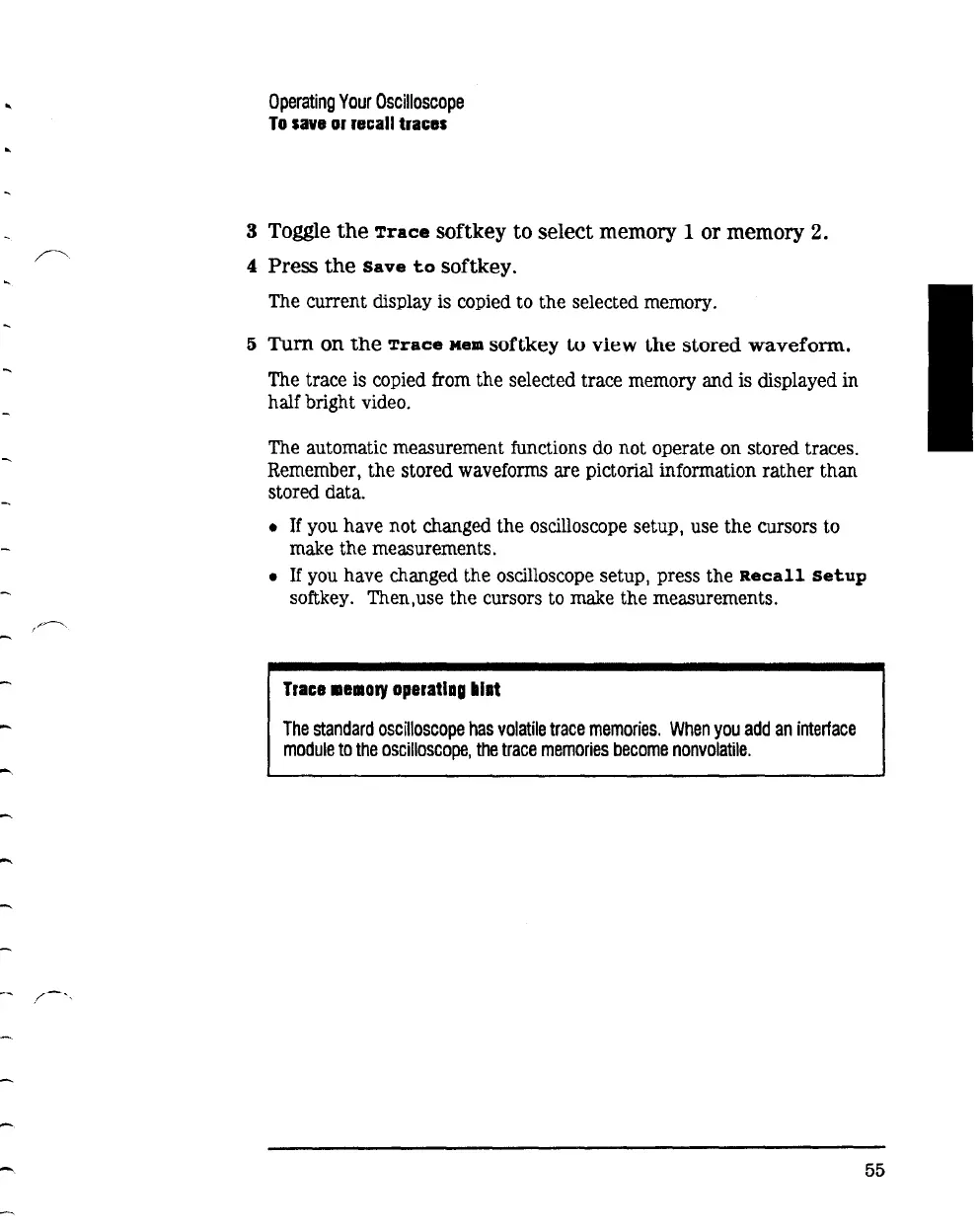 The trace is copied from the selected trace memory and is displayed in