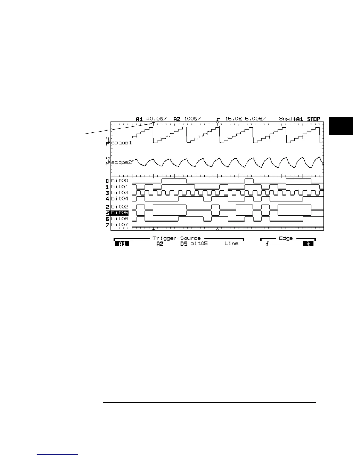 s, the trigger point is displayed on the screen. The part of the signal we
