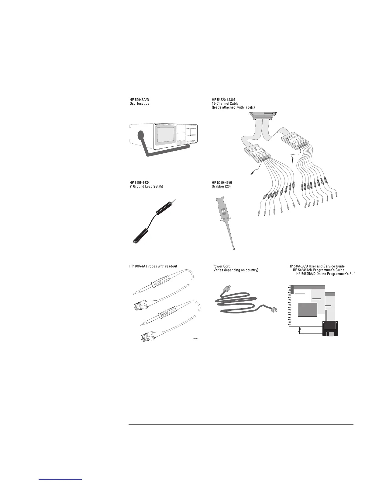 Items Supplied with the HP 54645A/D Oscilloscopes