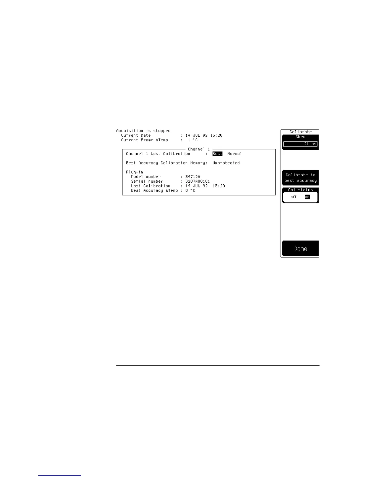 Pressing the Cal status (calibration status) softkey displays a screen similar