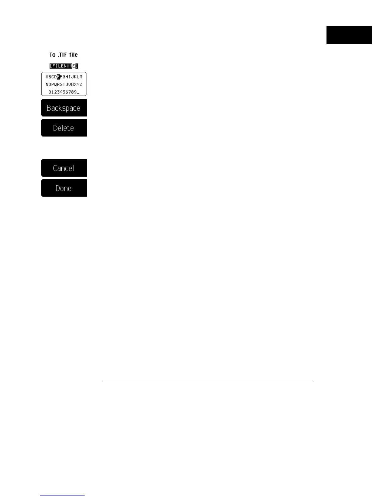 If you need to create a file name, press the file name softkey. Then, the