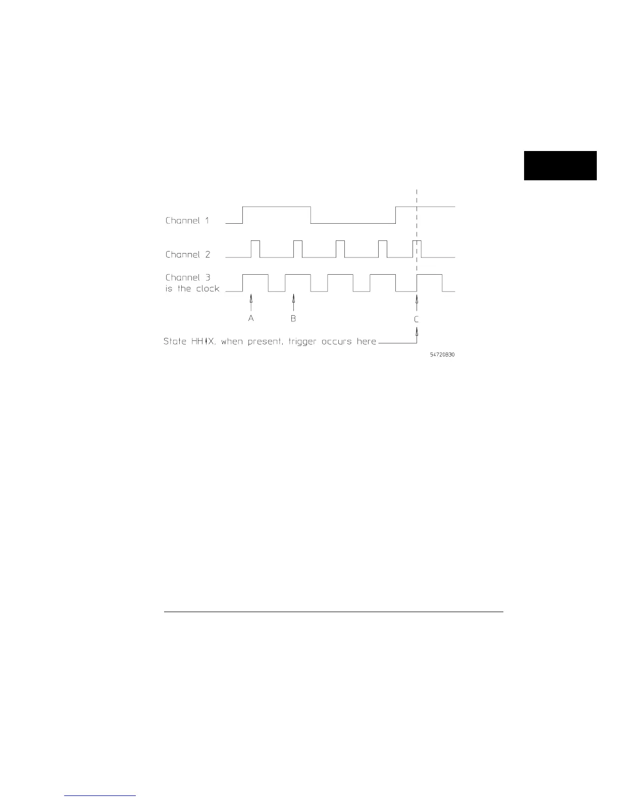 clock pulses A, B, and C. In the state mode, the pattern is checked for