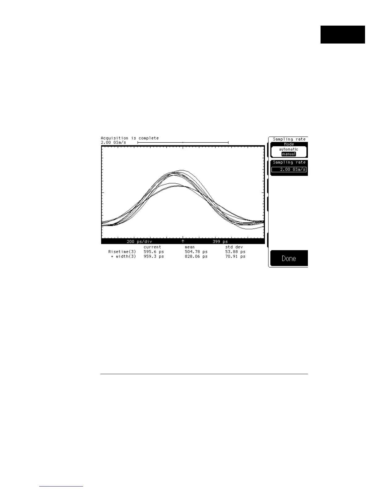 Figure 1-4 shows the same 489-ps pulse sampled at 2 GSa/s. Notice that ten