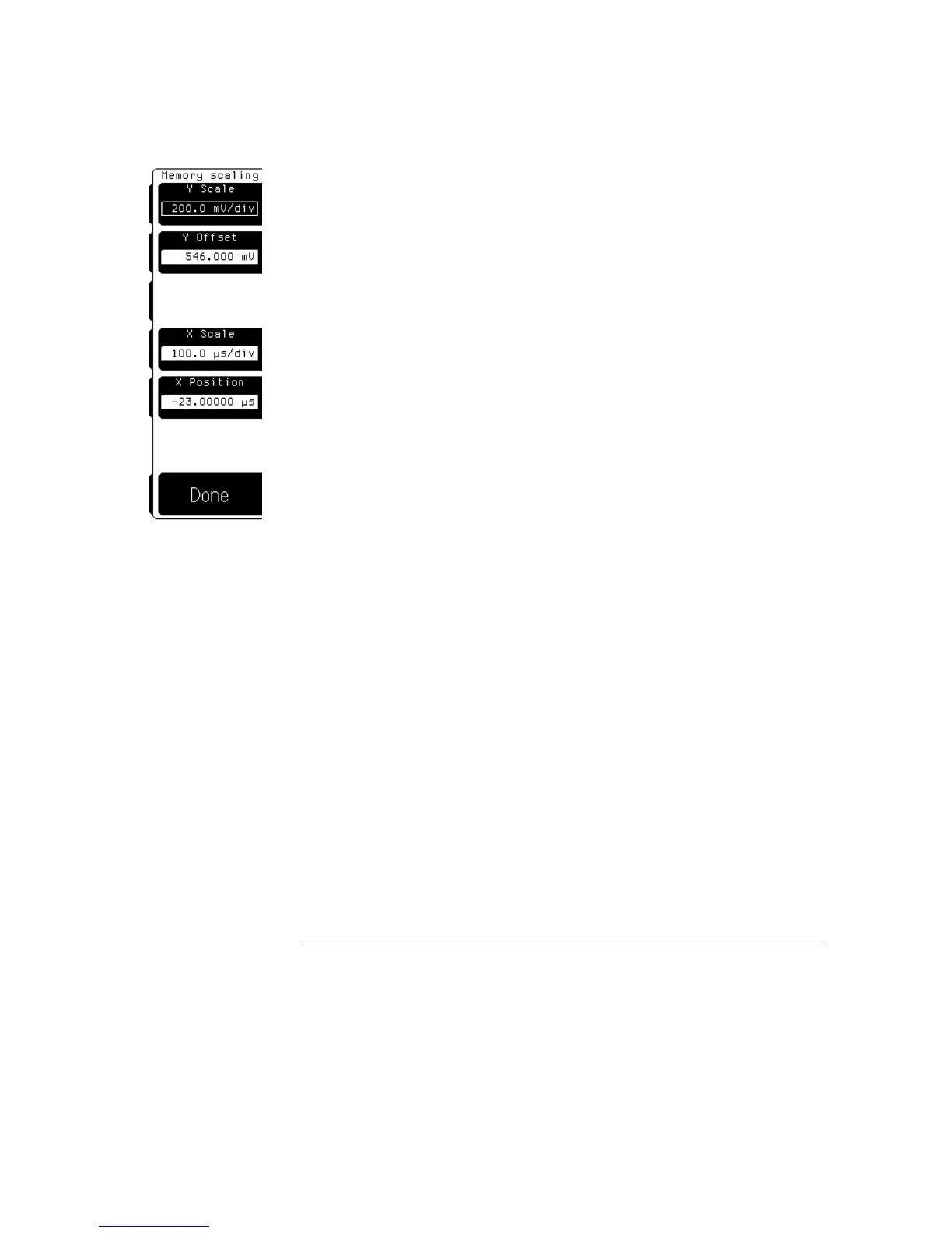 The Memory scaling softkey allows you to rescale a waveform vertically and