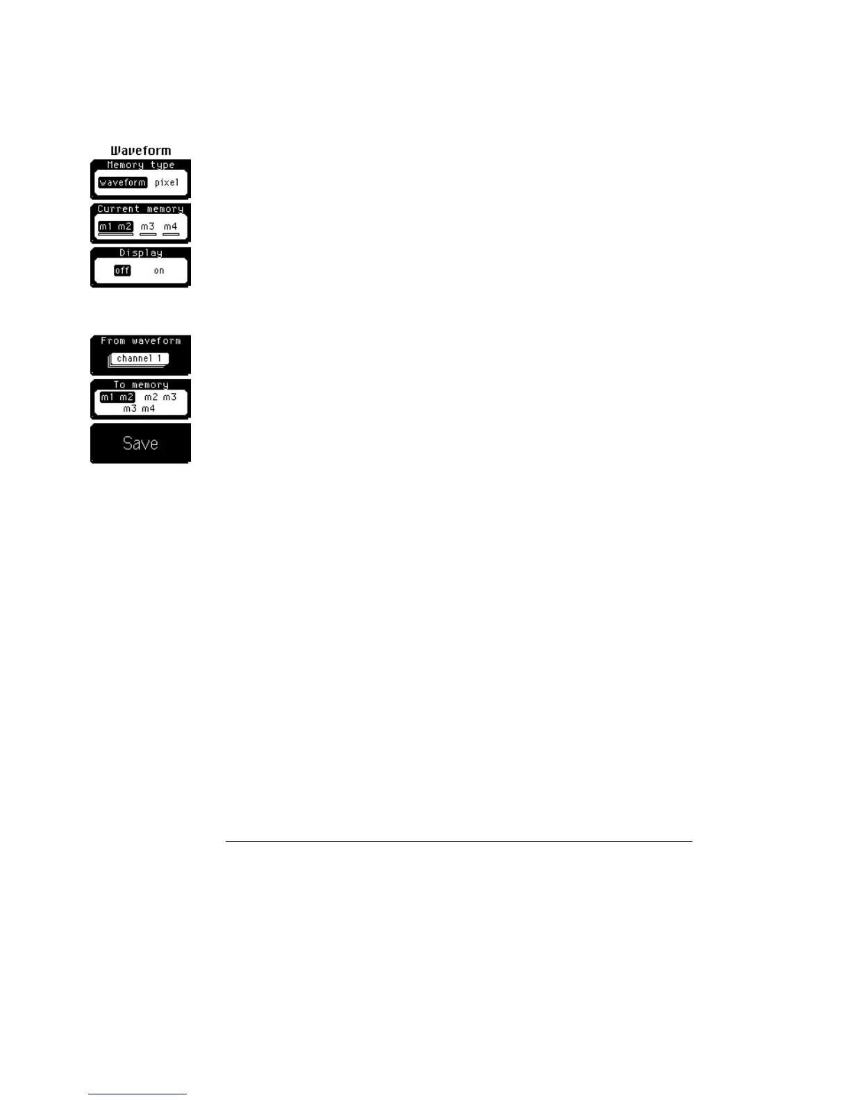 saves the waveform to. Pressing the To memory softkey toggles among the