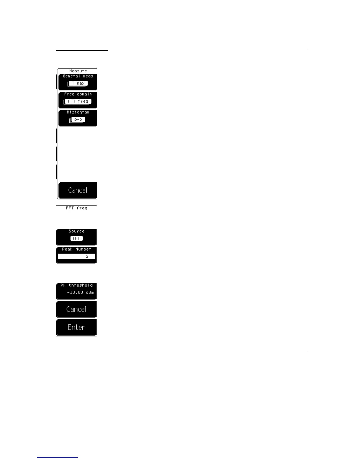 After an FFT measurement is selected, a second level menu allows you to