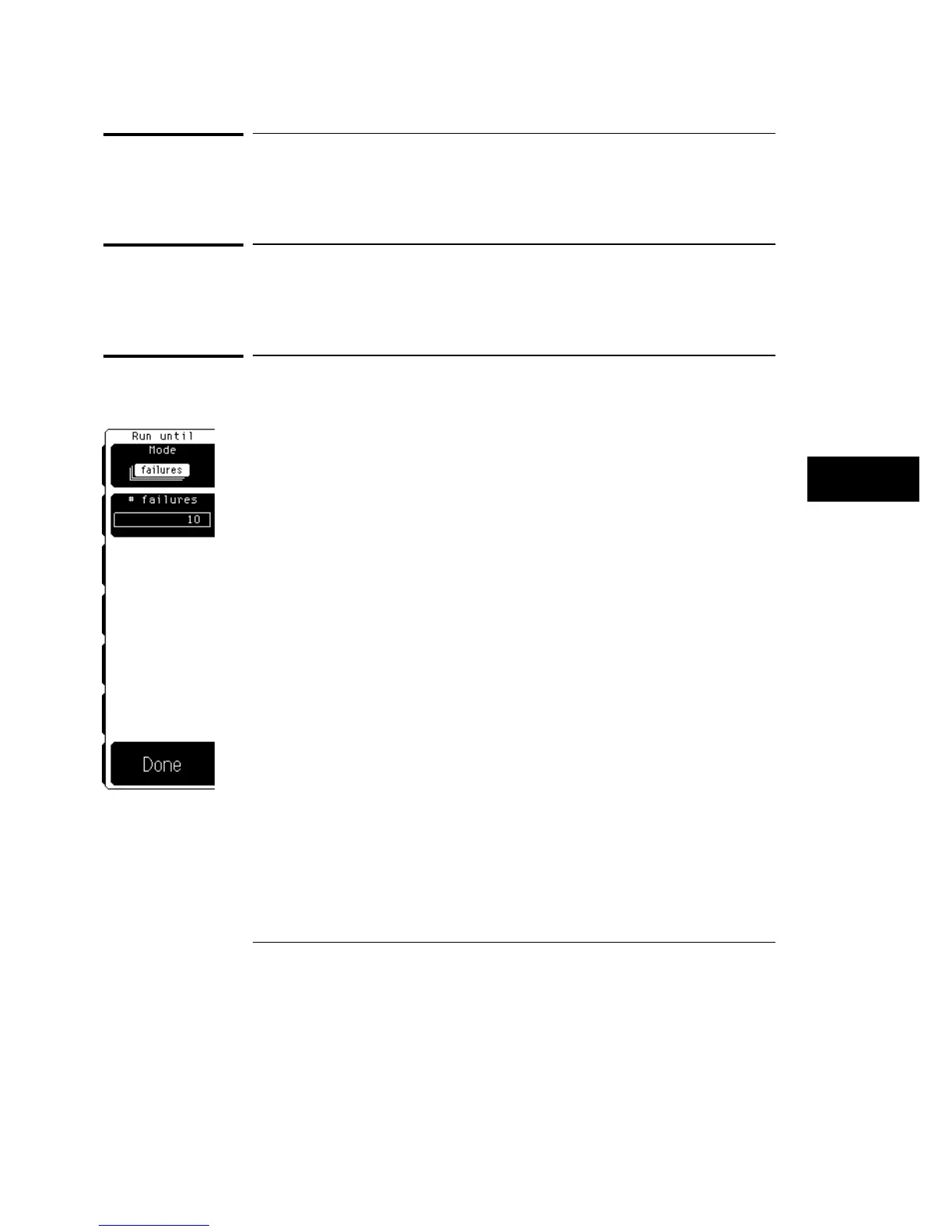 choices are run the test forever, run until a set number of failures occurs, or