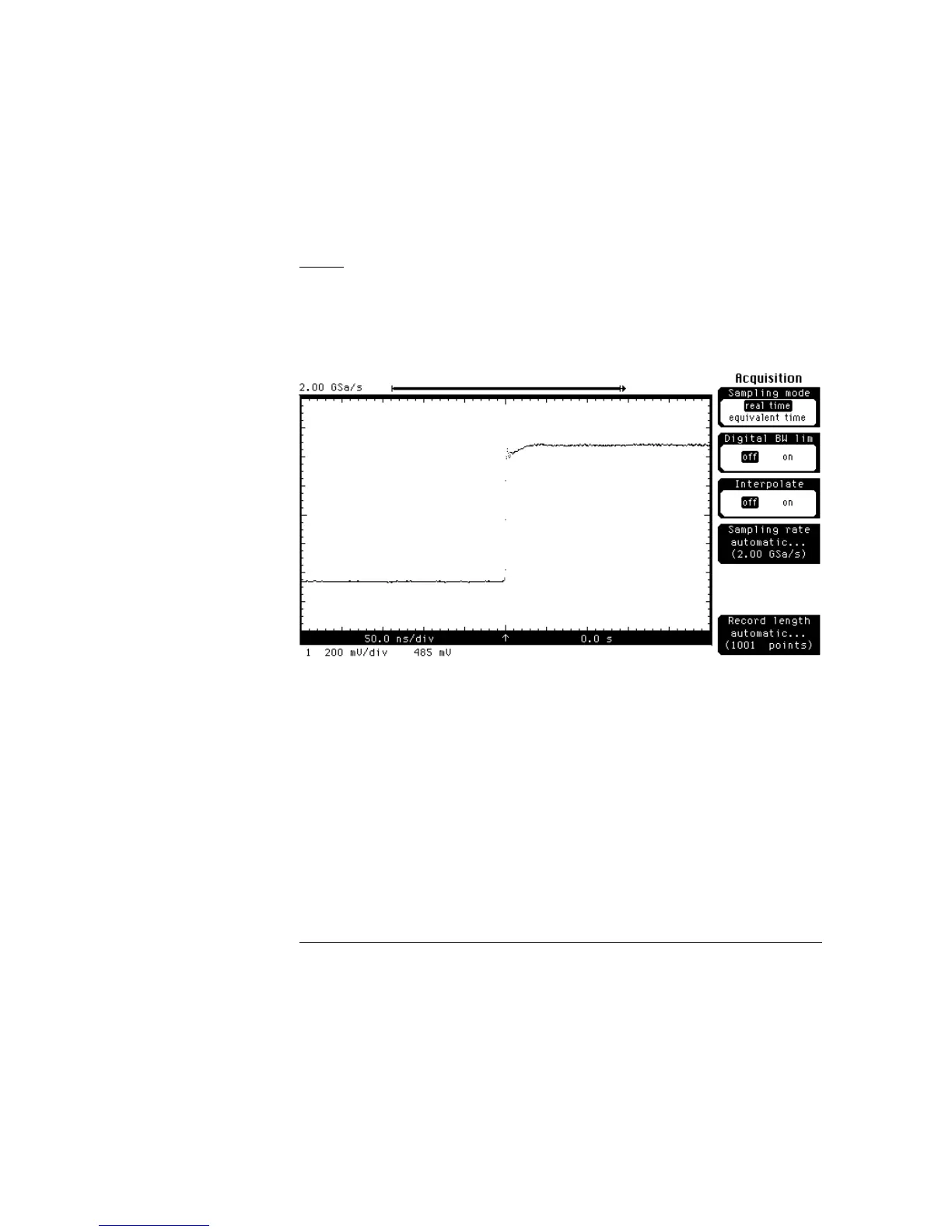 waveform record on the screen. Notice that the oscilloscope picked a sample