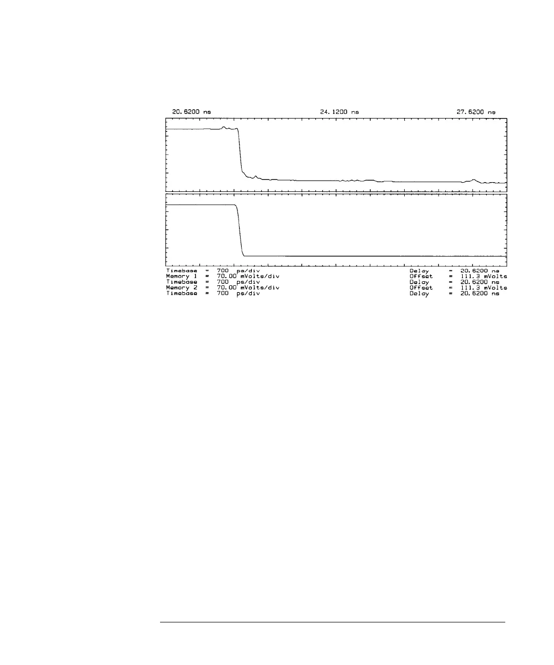 The top waveform shows distortions caused by cables and connectors. The bottom waveform