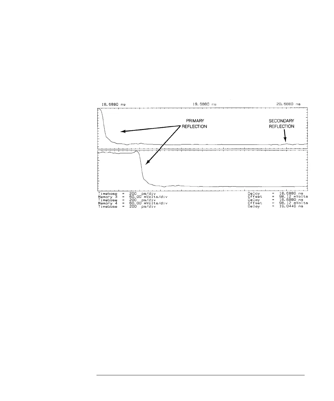 Decreasing delay in the bottom waveform removes the secondary reflection shown at the right end
