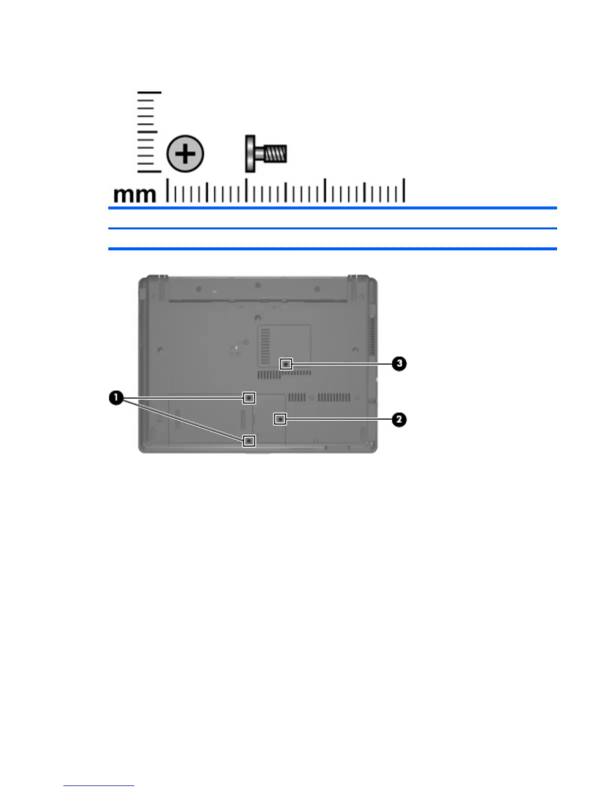 (3) One captive screw that secures the memory module compartment cover to the computer (screw is
