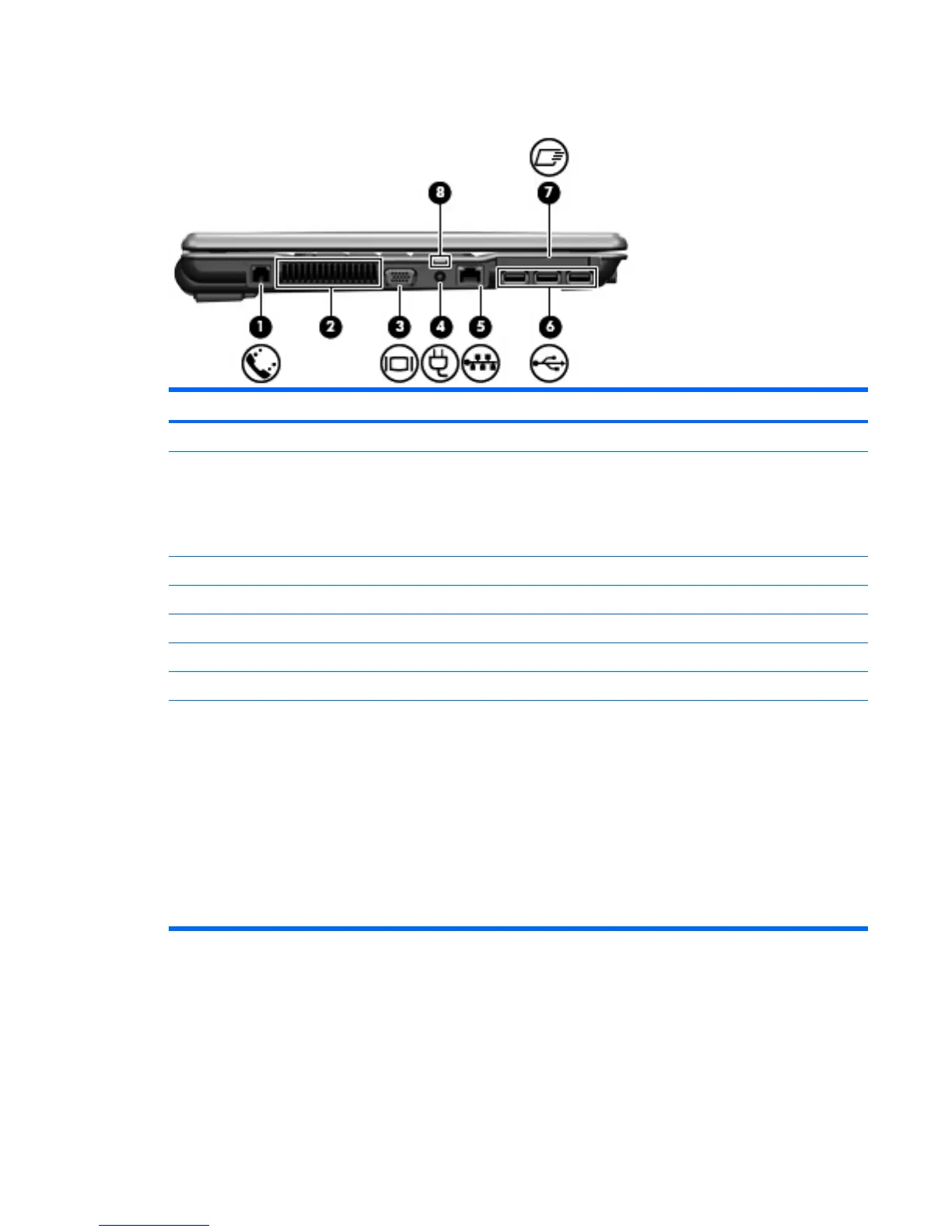 (1) RJ-11 (modem) jack Connects a modem cable.