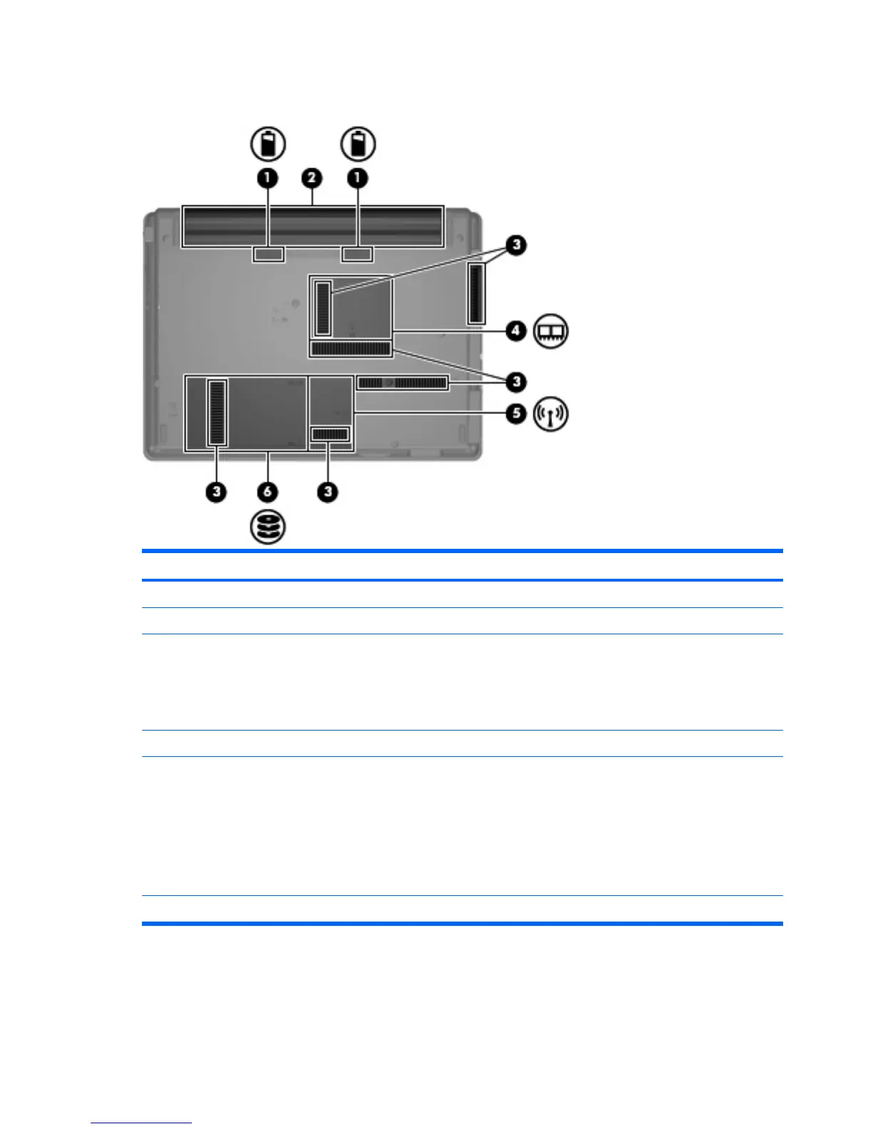 (5) WLAN module compartment (select models only) Contains a WLAN module slot.