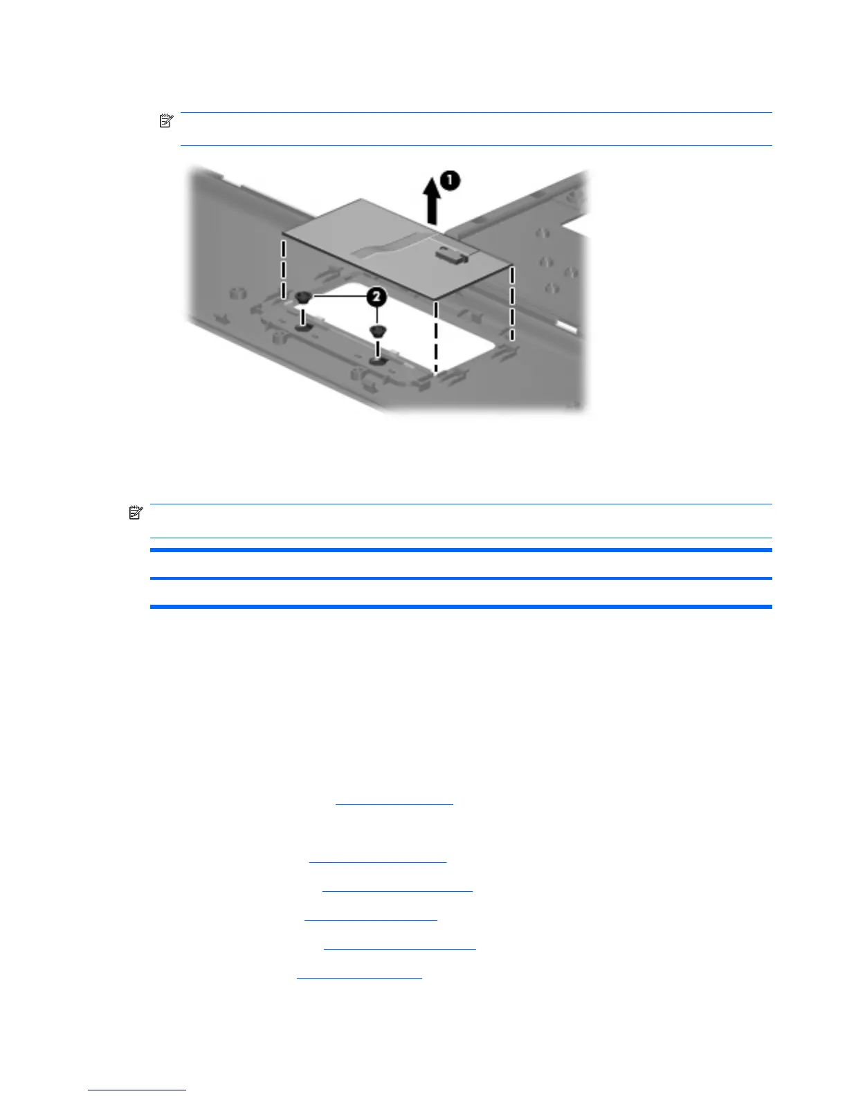 9. Remove the TouchPad board (1) from the top cover.