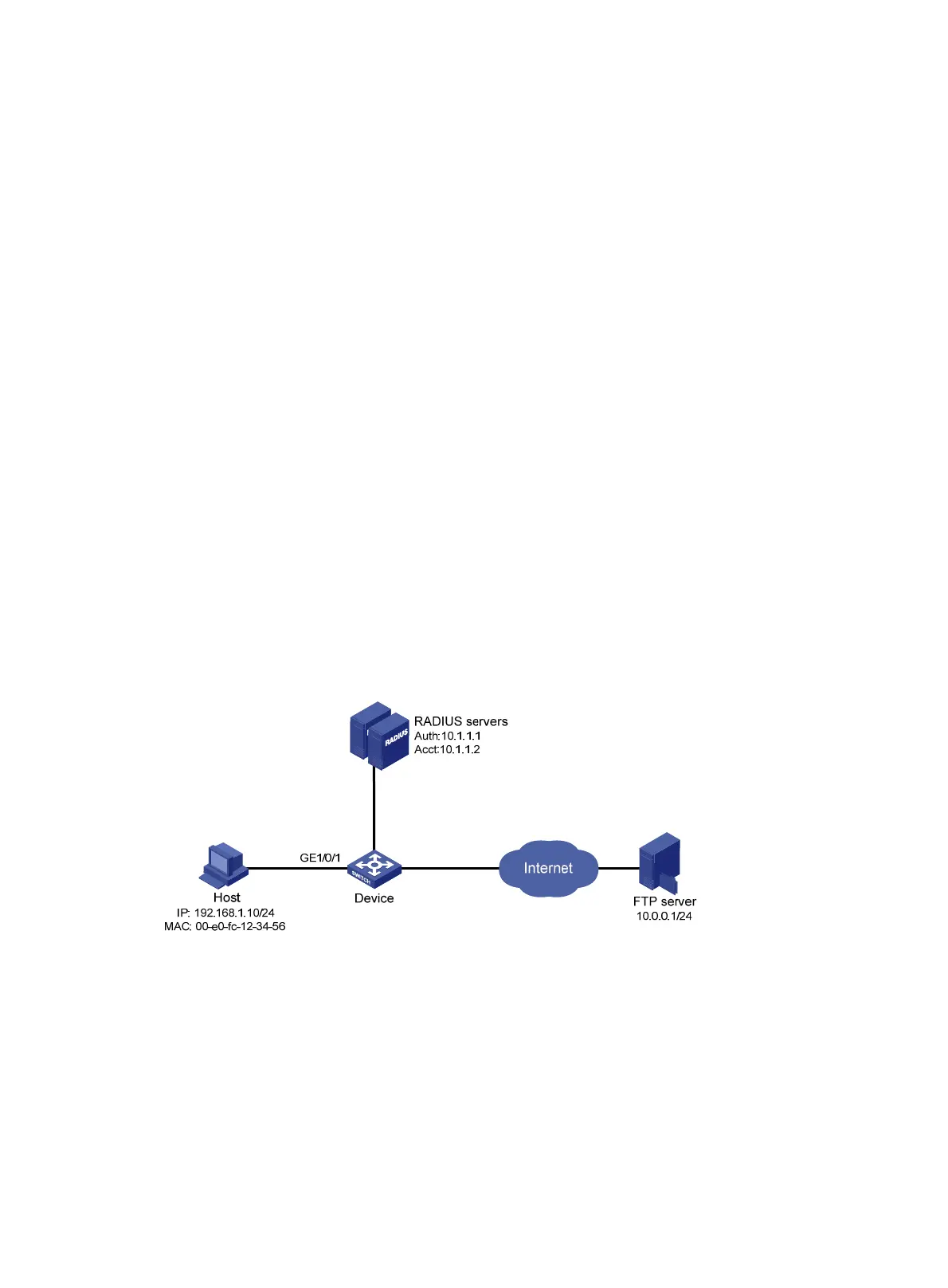 Perform MAC authentication on port GigabitEthernet 1/0/1 to control Internet access. Make sure that an