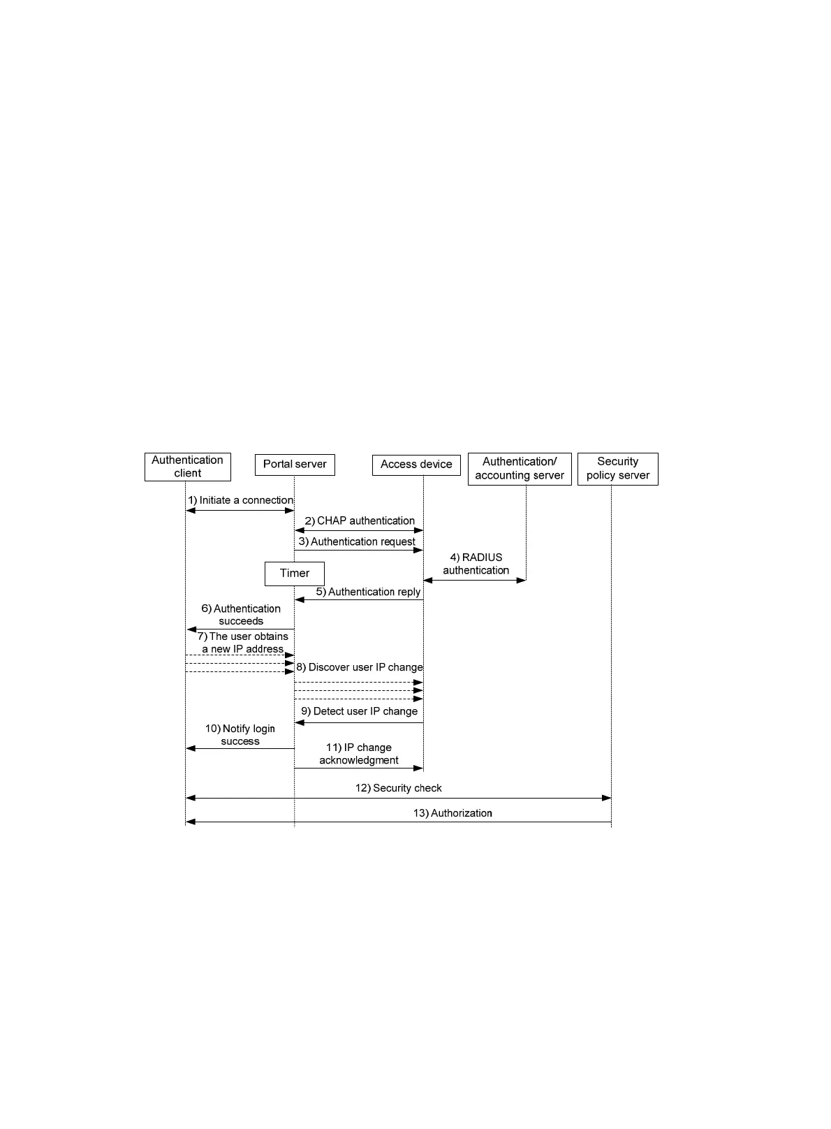 7. The portal server sends an authentication reply acknowledgment message to the access device.