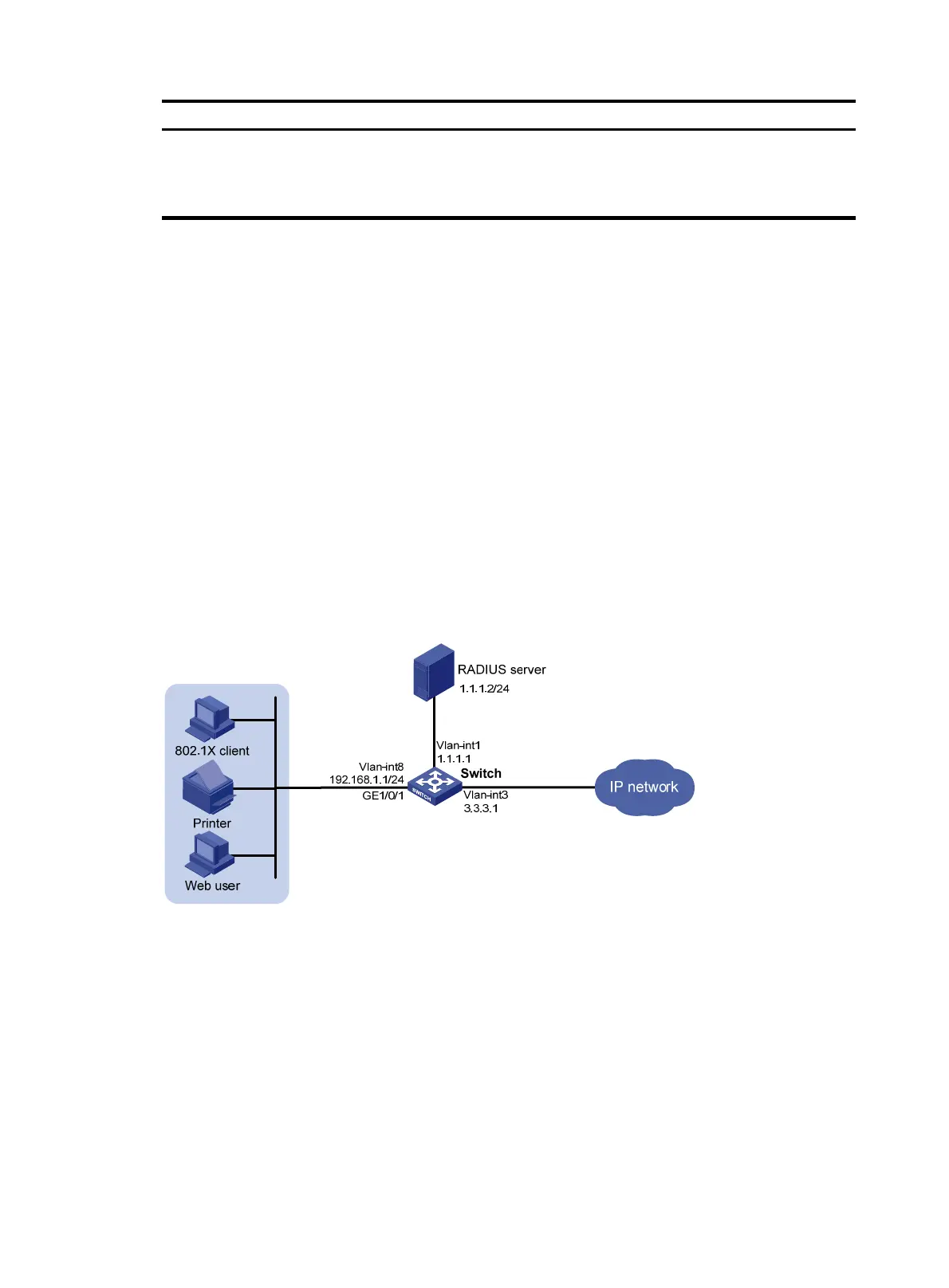 functions work normally. In this example, configure on the RADIUS server an 802.1X user (with