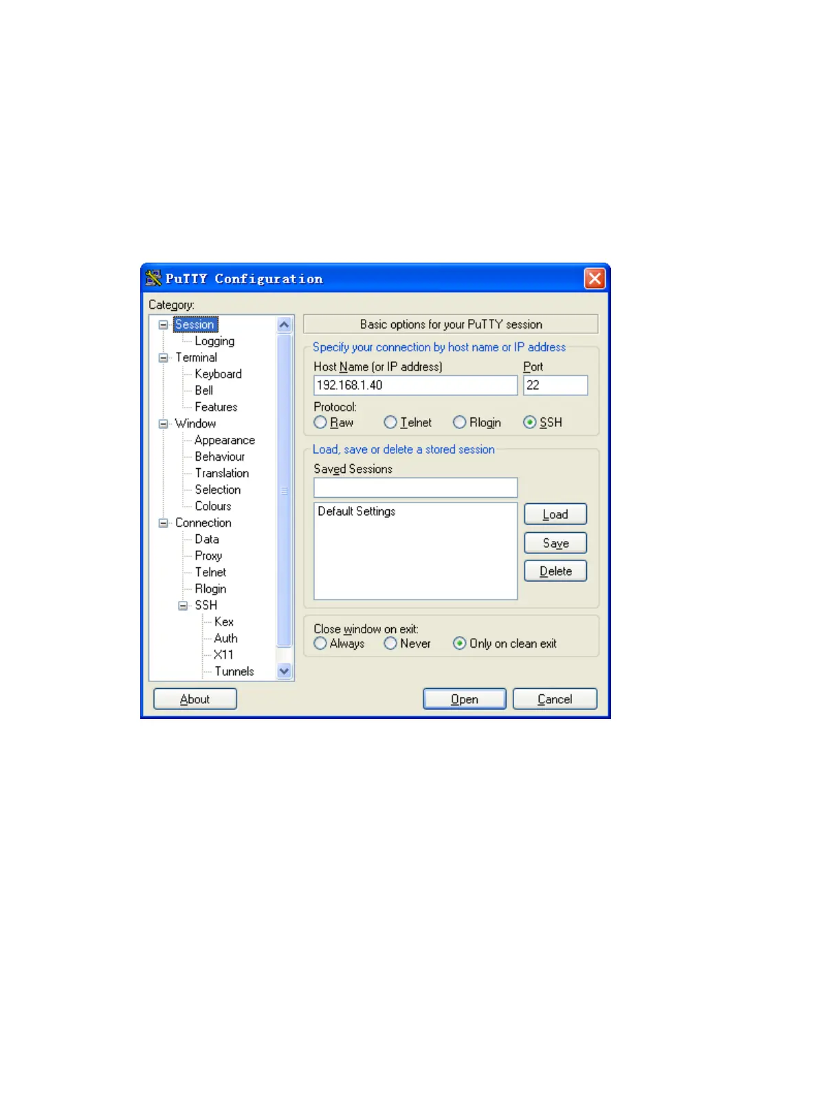 a. Launch PuTTY.exe to enter the interface as shown in Figure 97.