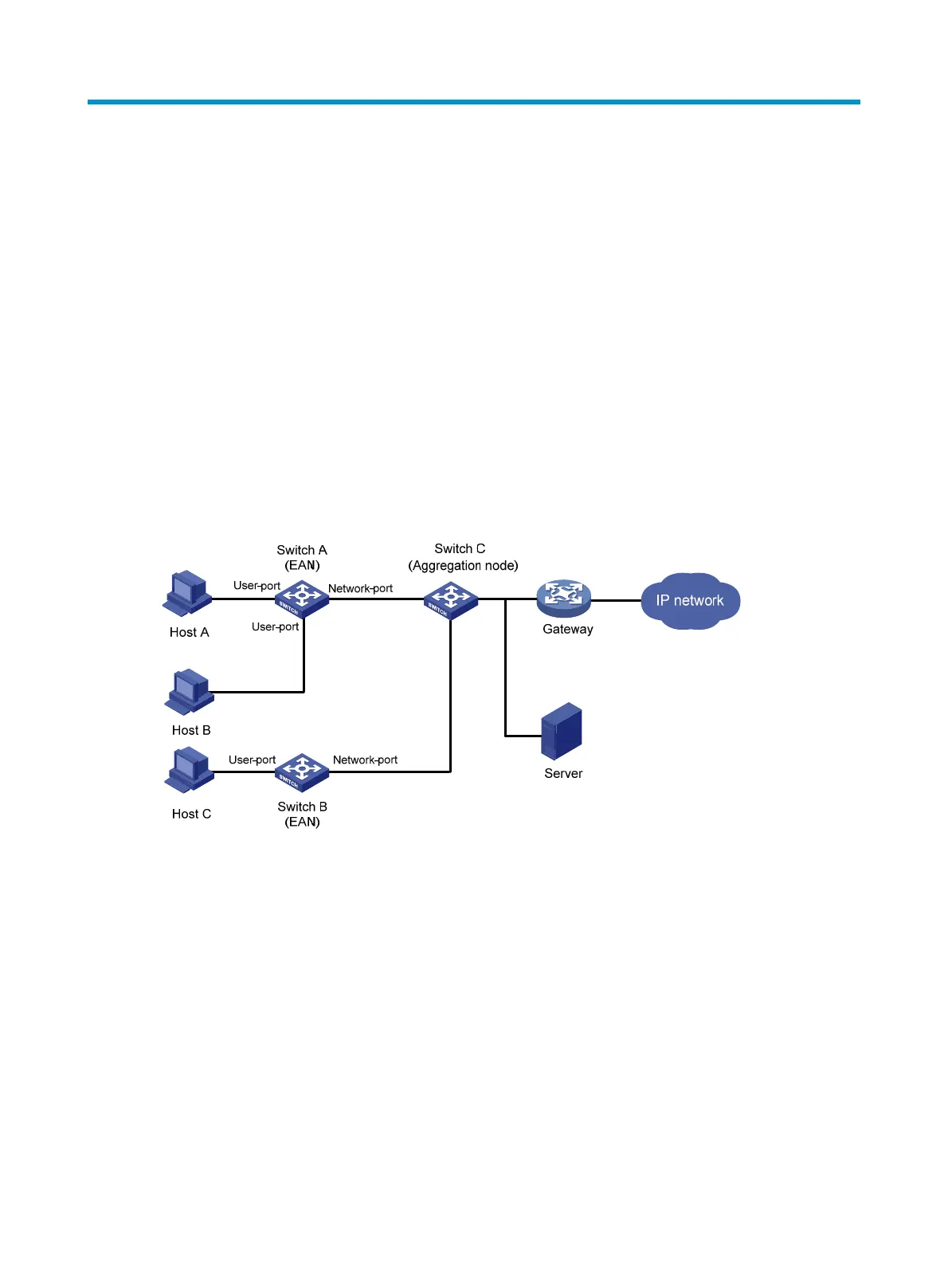 As shown in Figure 130, hosts are connected to Switch C (aggregation node) through Switch A and