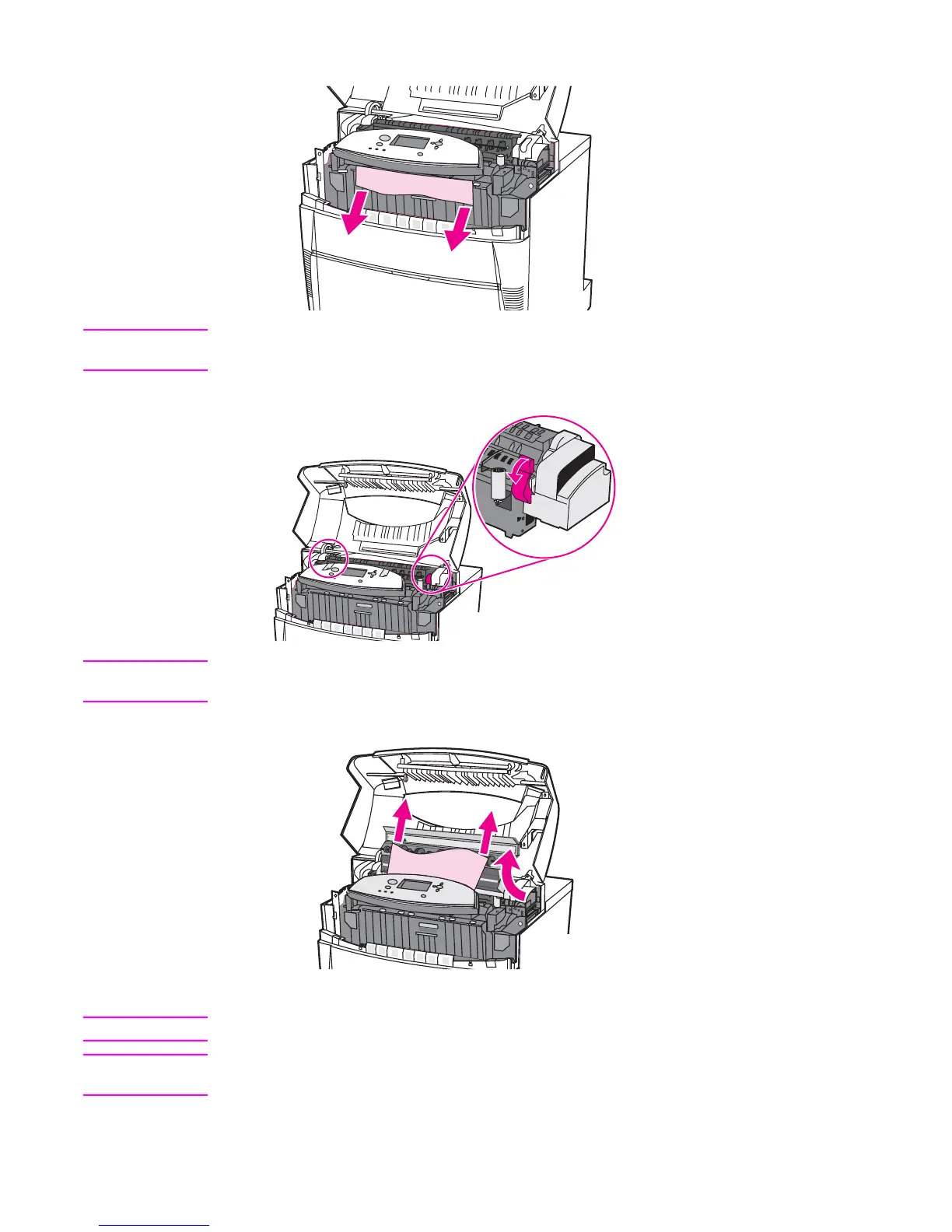 6. Inspect the fuser and remove any paper that is crumpled in the fuser.