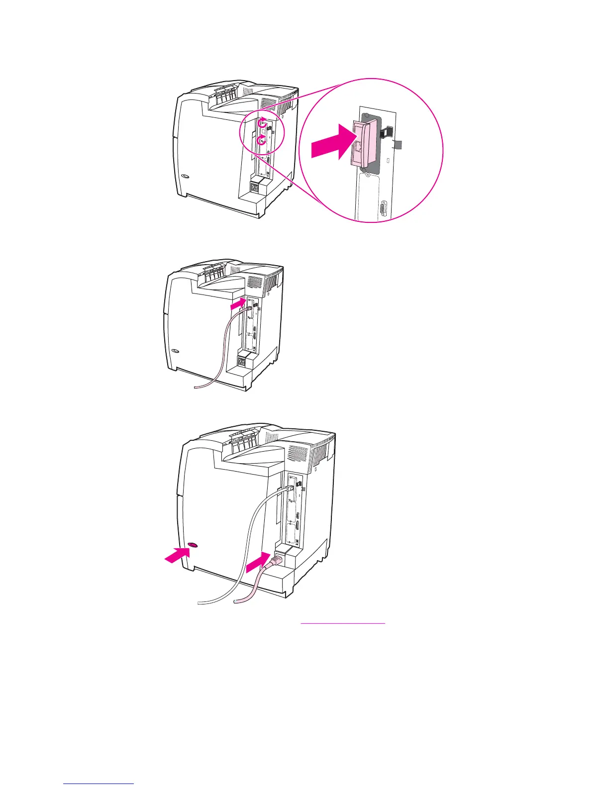 4. Firmly insert the HP Jetdirect print server card into the EIO slot. Insert and tighten the
