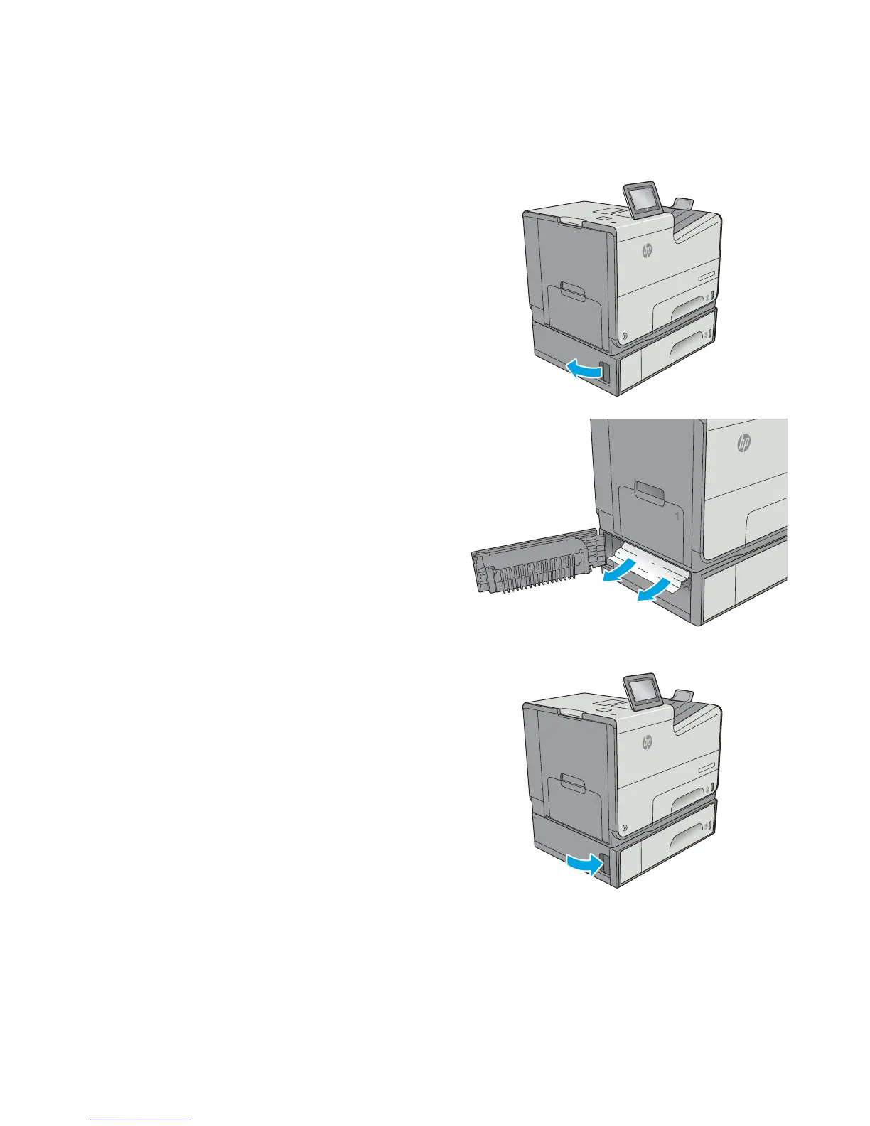 Use the following procedure to check for paper in all possible jam locations related to Tray 3. When a jam