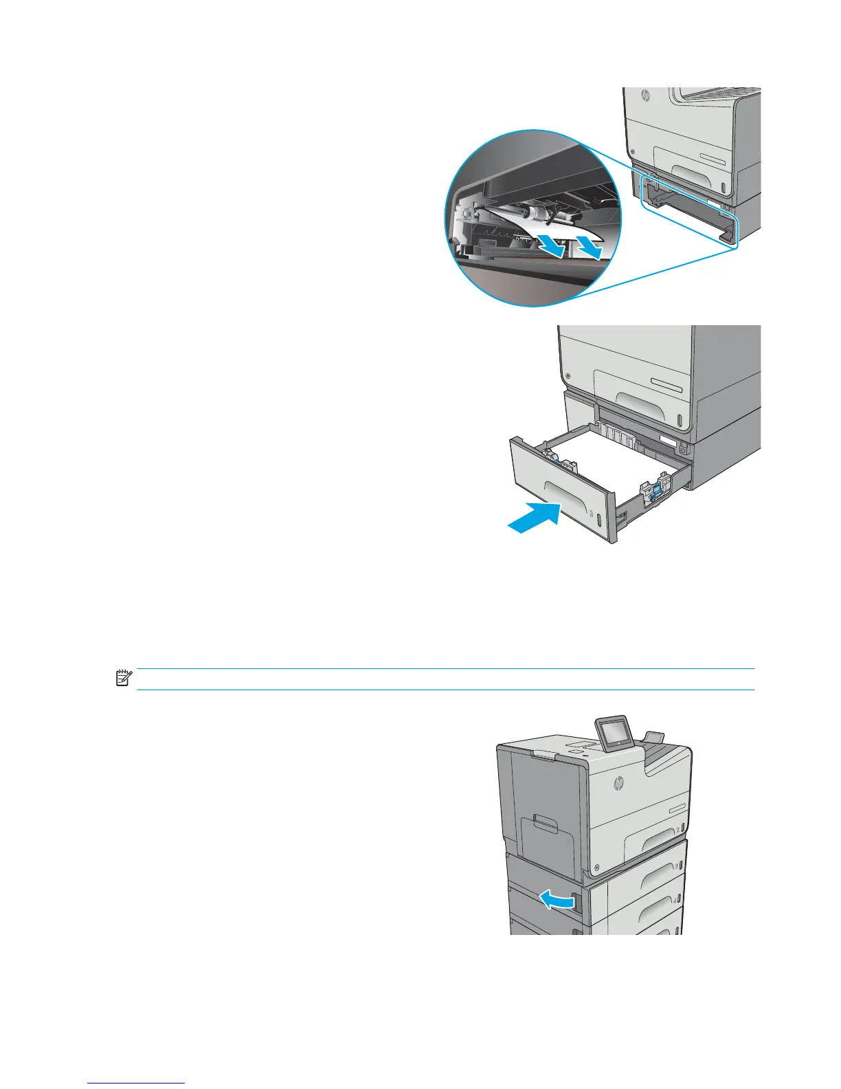 NOTE: The following procedure shows Tray 3. The method to clear jams in Trays 4 and 5 is the same.