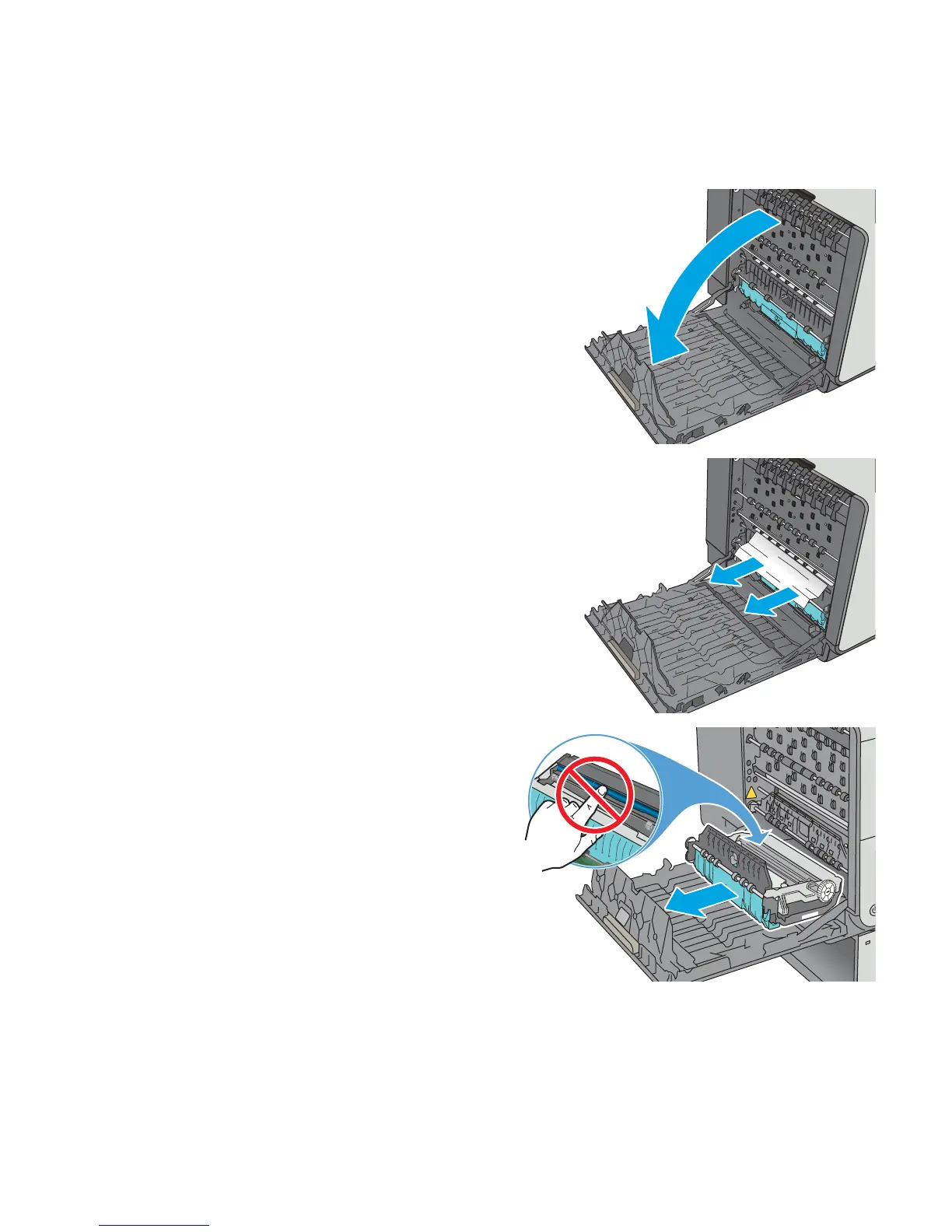 The following information describes how to clear paper jams in the ink-collection unit. When a jam occurs, the