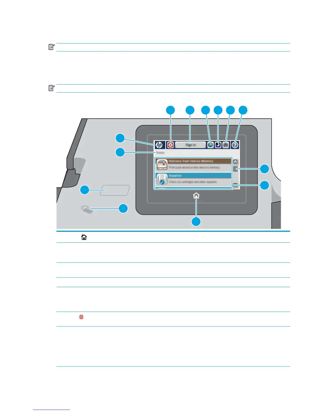 NOTE: The features that appear on the Home screen can vary, depending on the printer conguration.
