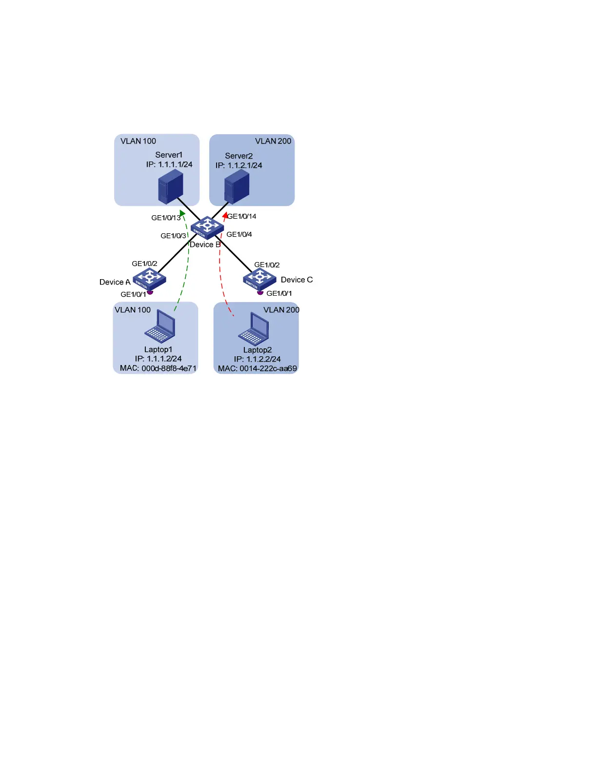 [DeviceA] mac-vlan mac-address 0014-222c-aa69 vlan 200