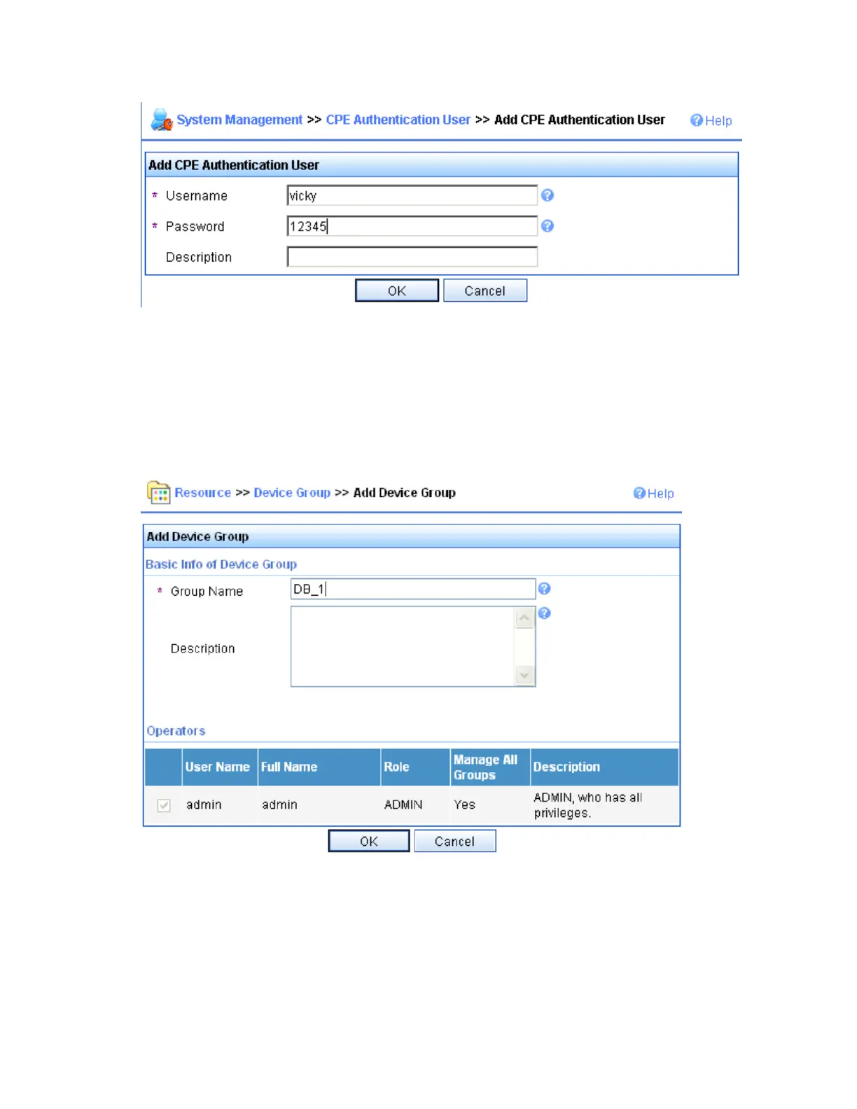 Figure 49 Add CPE authentication user page