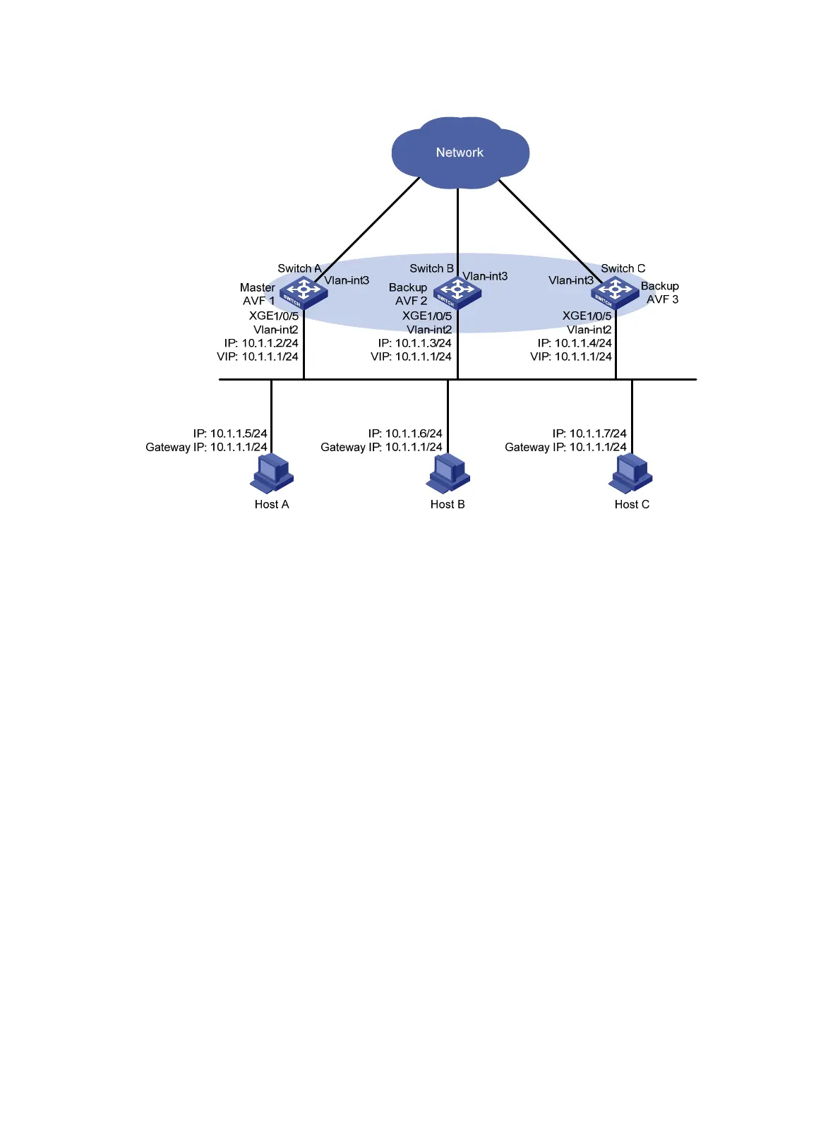 [SwitchA-Vlan-interface2] vrrp vrid 1 virtual-ip 10.1.1.1