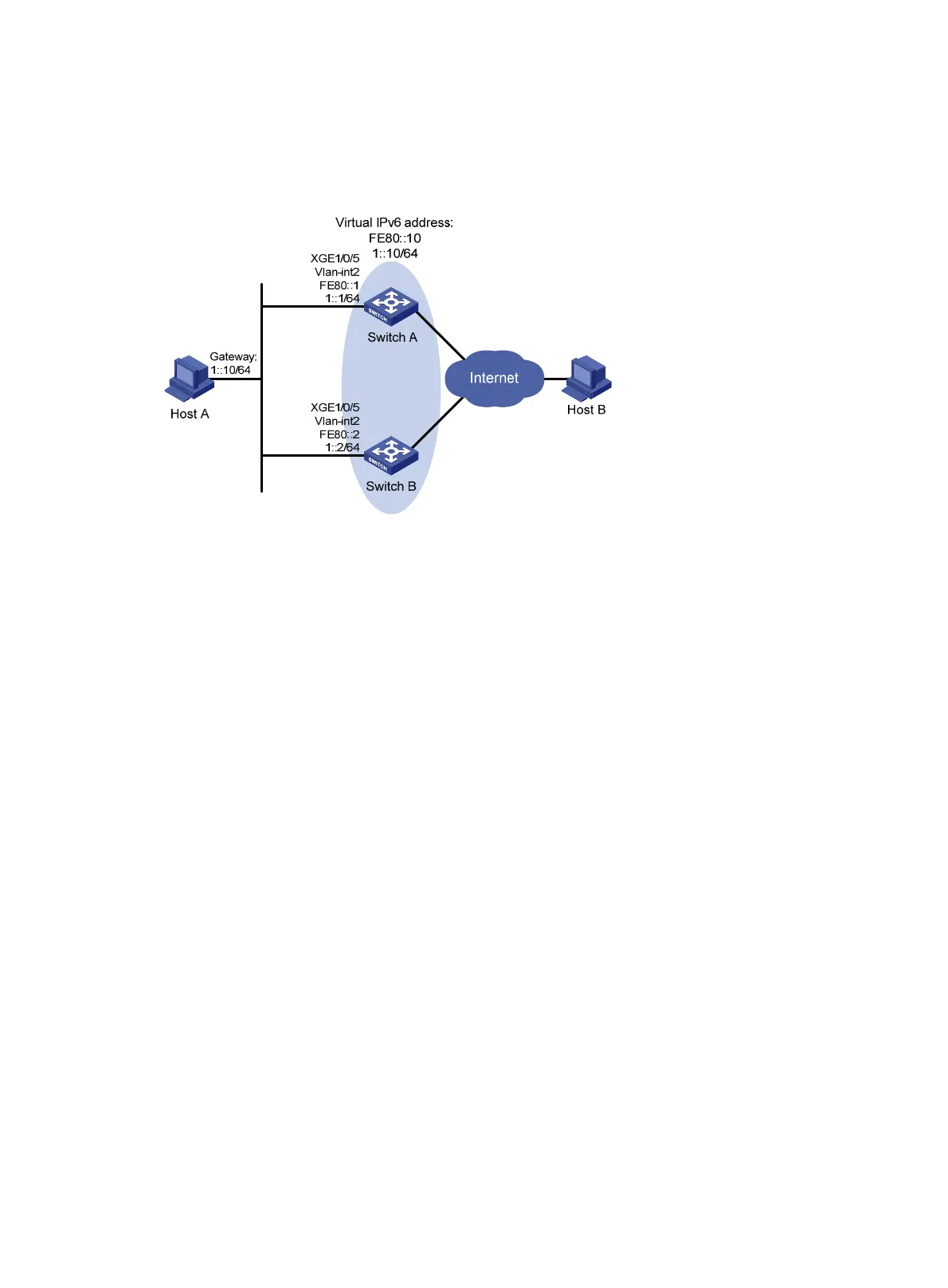 [SwitchA-Vlan-interface2] vrrp ipv6 vrid 1 virtual-ip 1::10