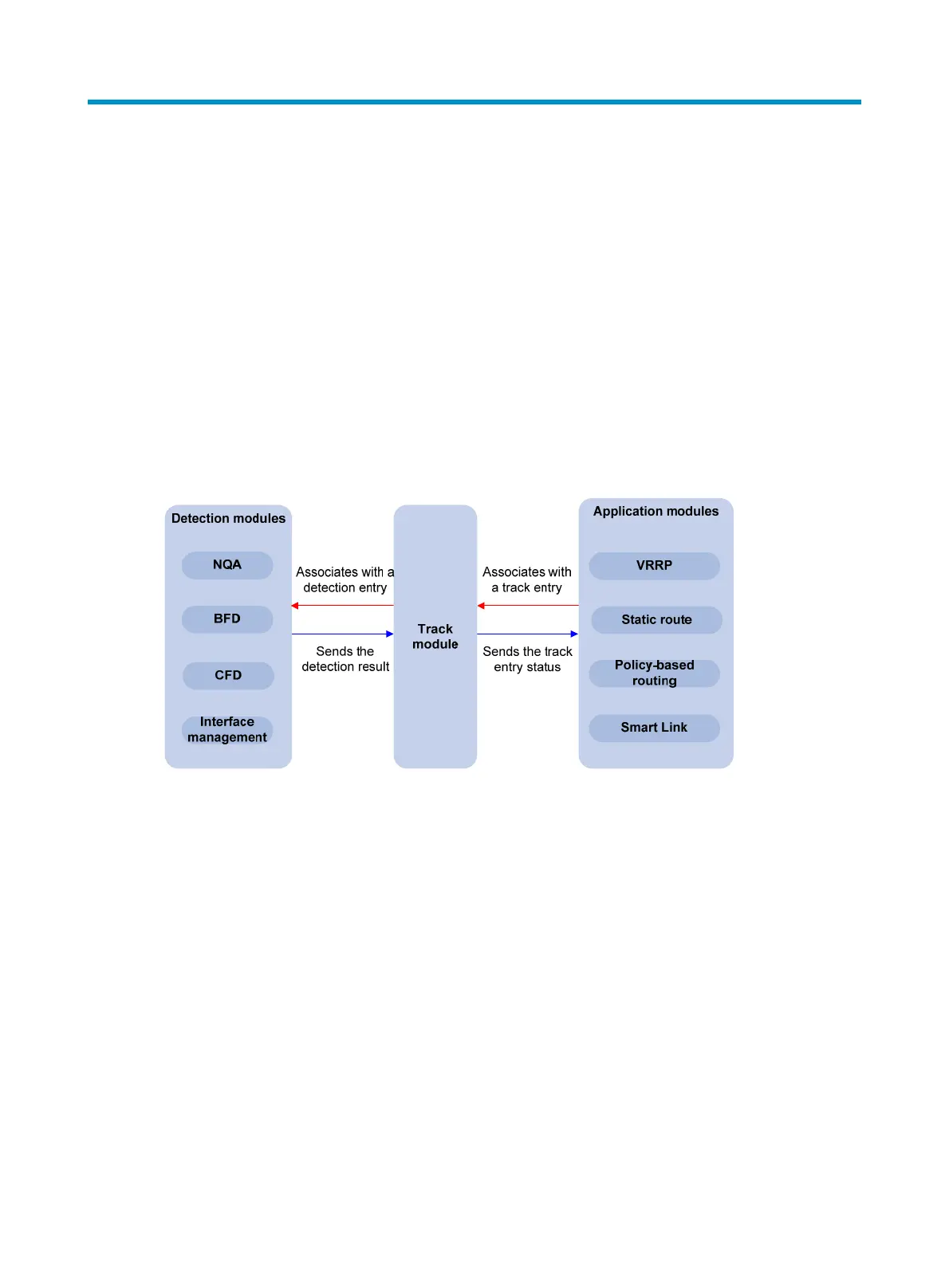 network reachability, and network performance, and informs the Track module of detection results. The