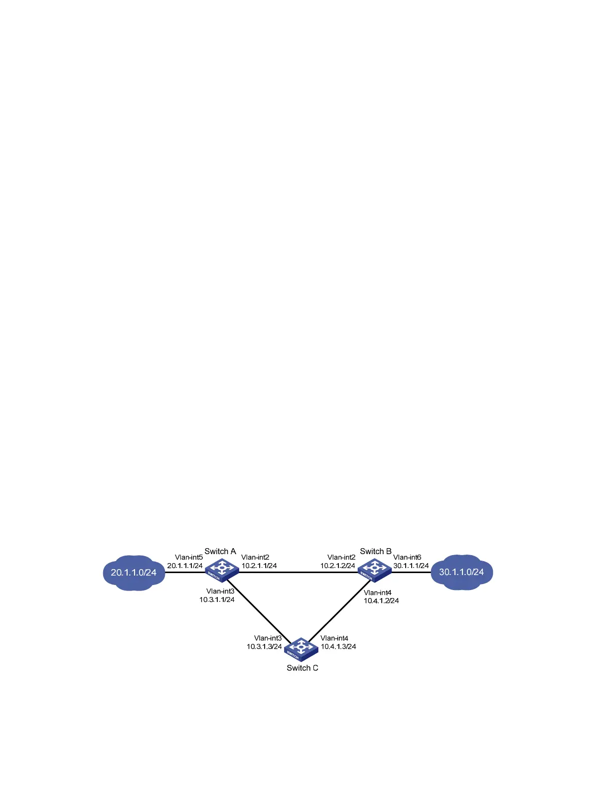 • On Switch A, assign a higher priority to the static route to 30.1.1.0/24 with Switch B as the next hop.