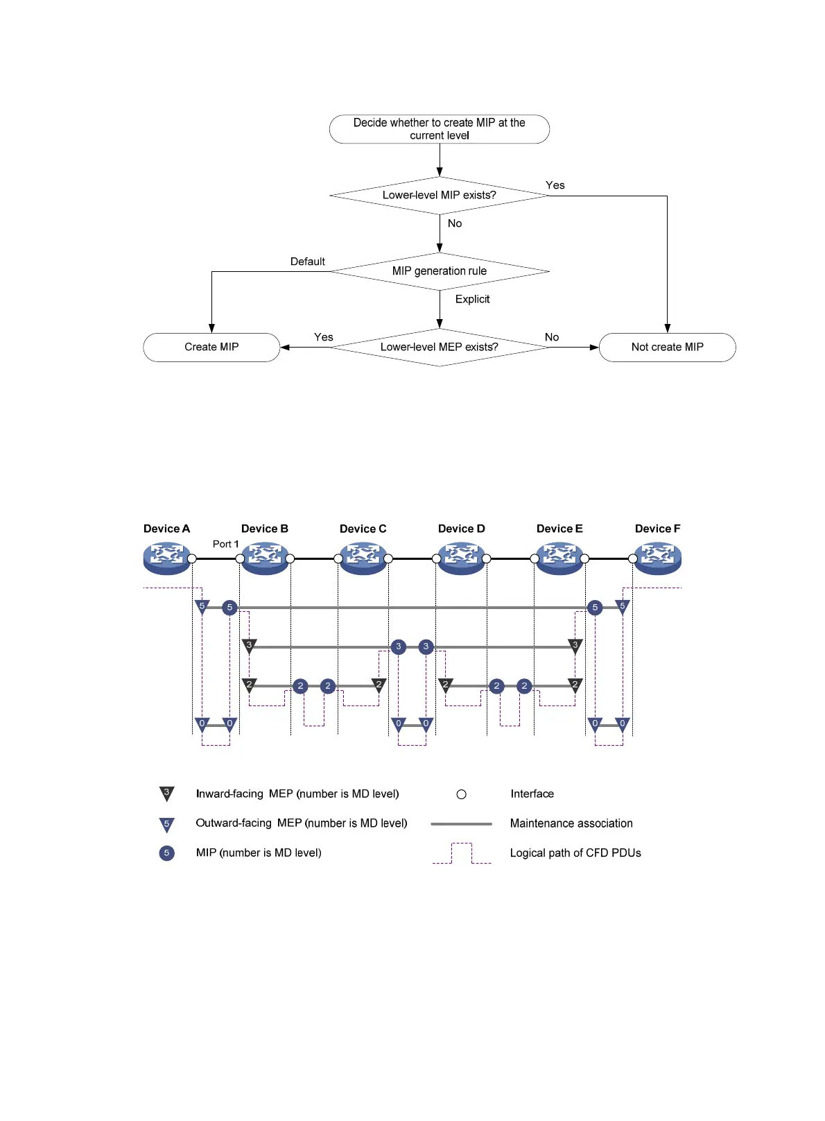 MPs: a level 5 MIP, a level 3 inward-facing MEP, a level 2 inward-facing MEP, and a level 0