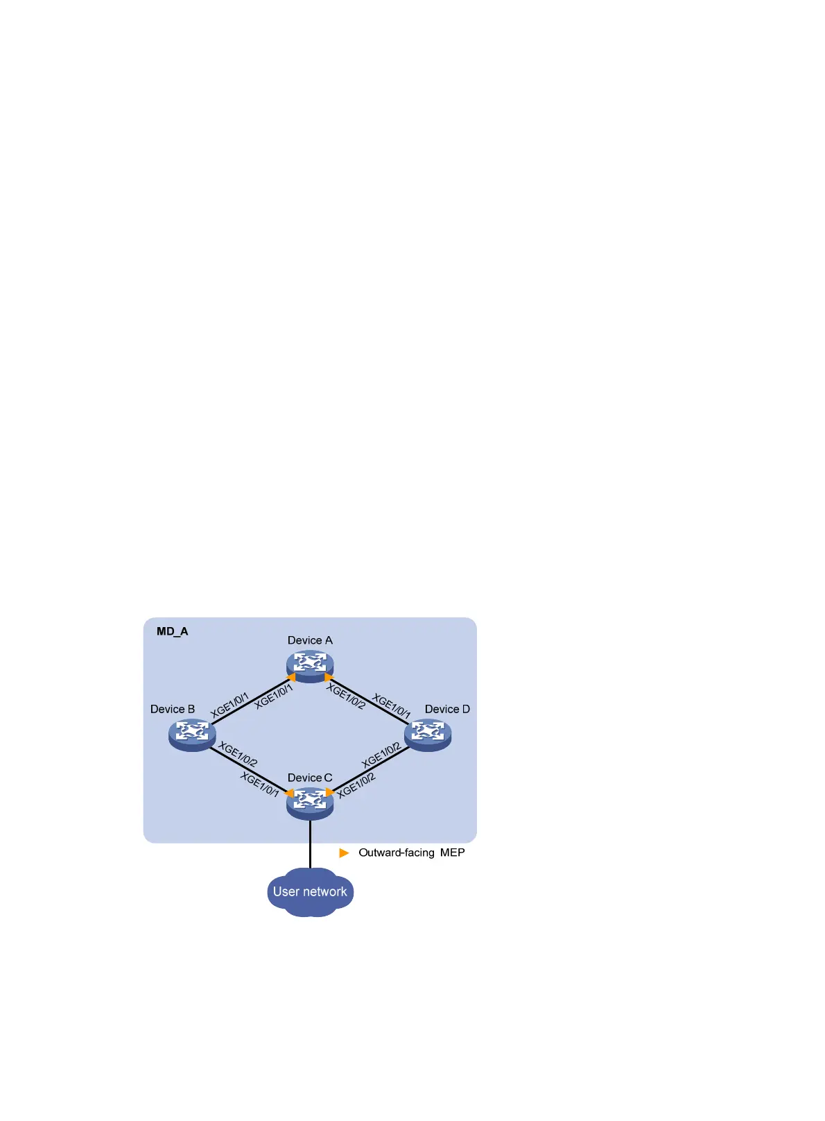 • Device A, Device B, Device C, and Device D form maintenance domain (MD) MD_A of level 5.