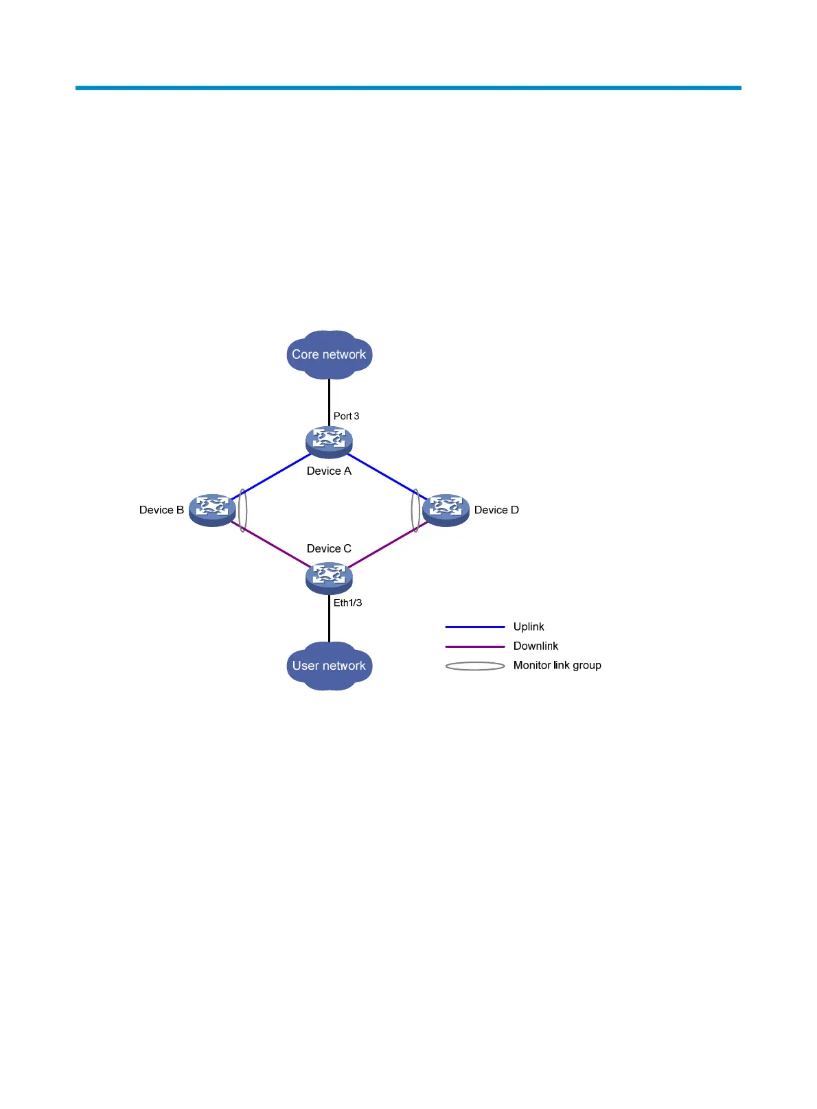 • Port 1 and Port 2 of Device D form another monitor link group.