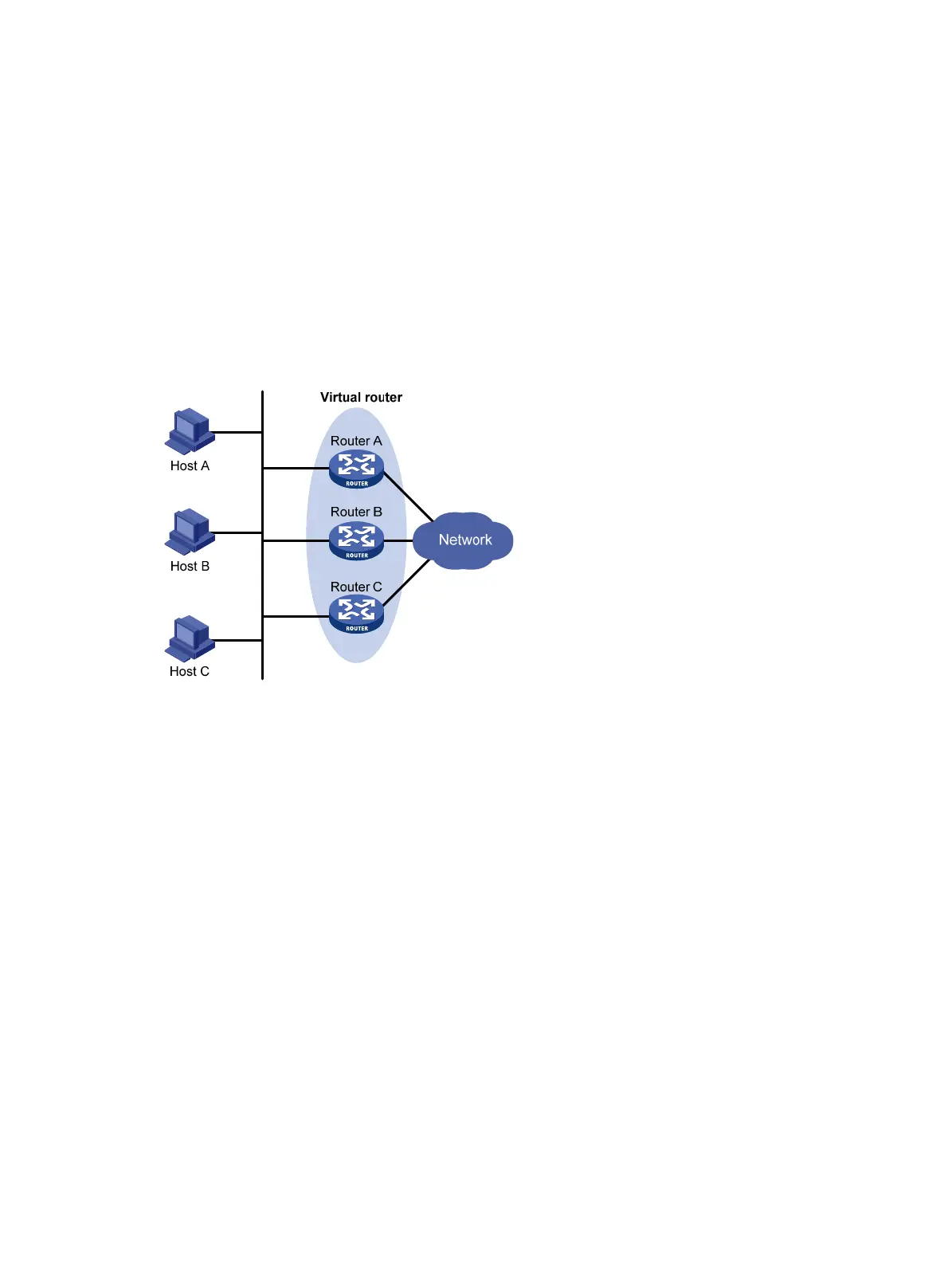 address. Hosts on the subnet use the virtual router as the default gateway.