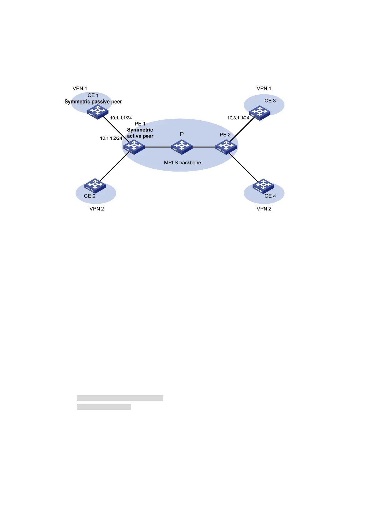 # Specify CE 1 in VPN 1 as the symmetric-passive peer of PE 1.