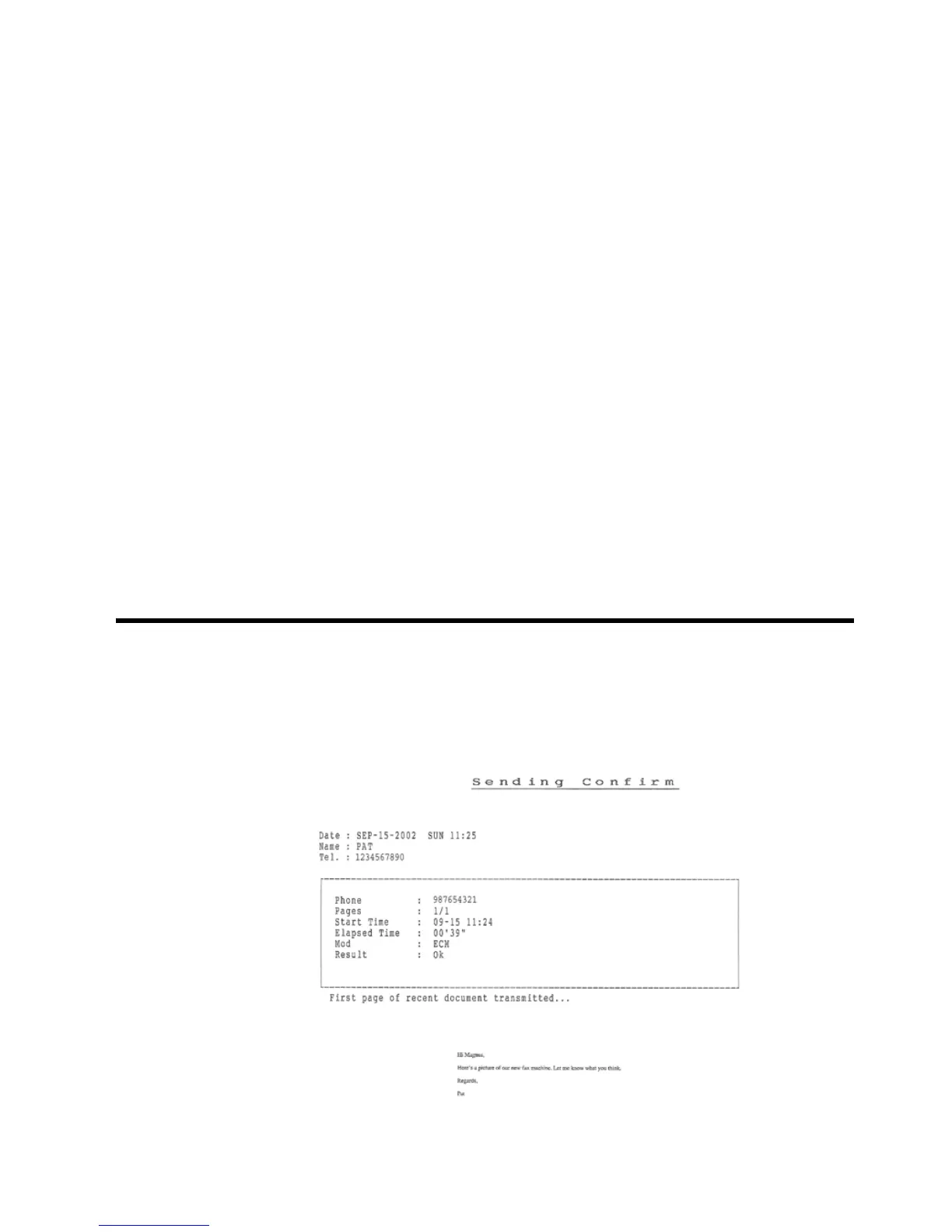 records of faxes you send. It prints a Sending Confirm page with a miniaturized