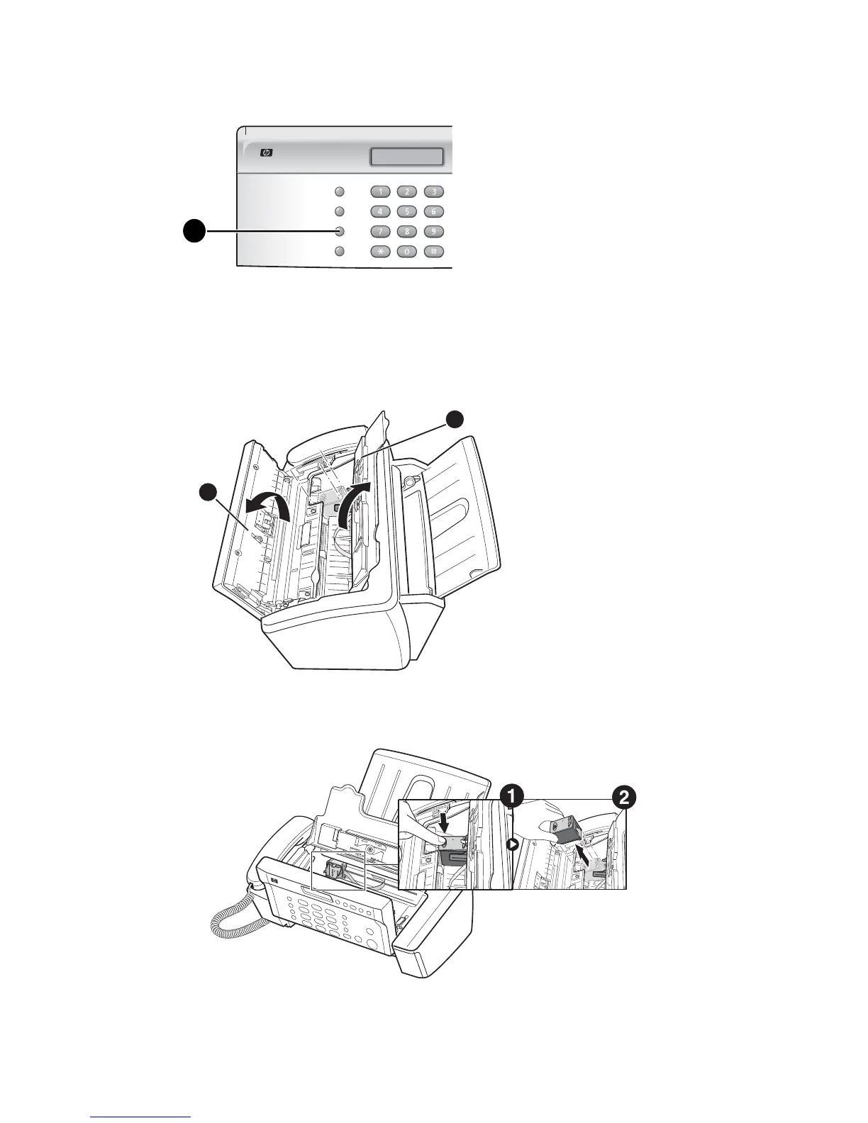3. Open the control panel and cartridge compartment cover (it will click and