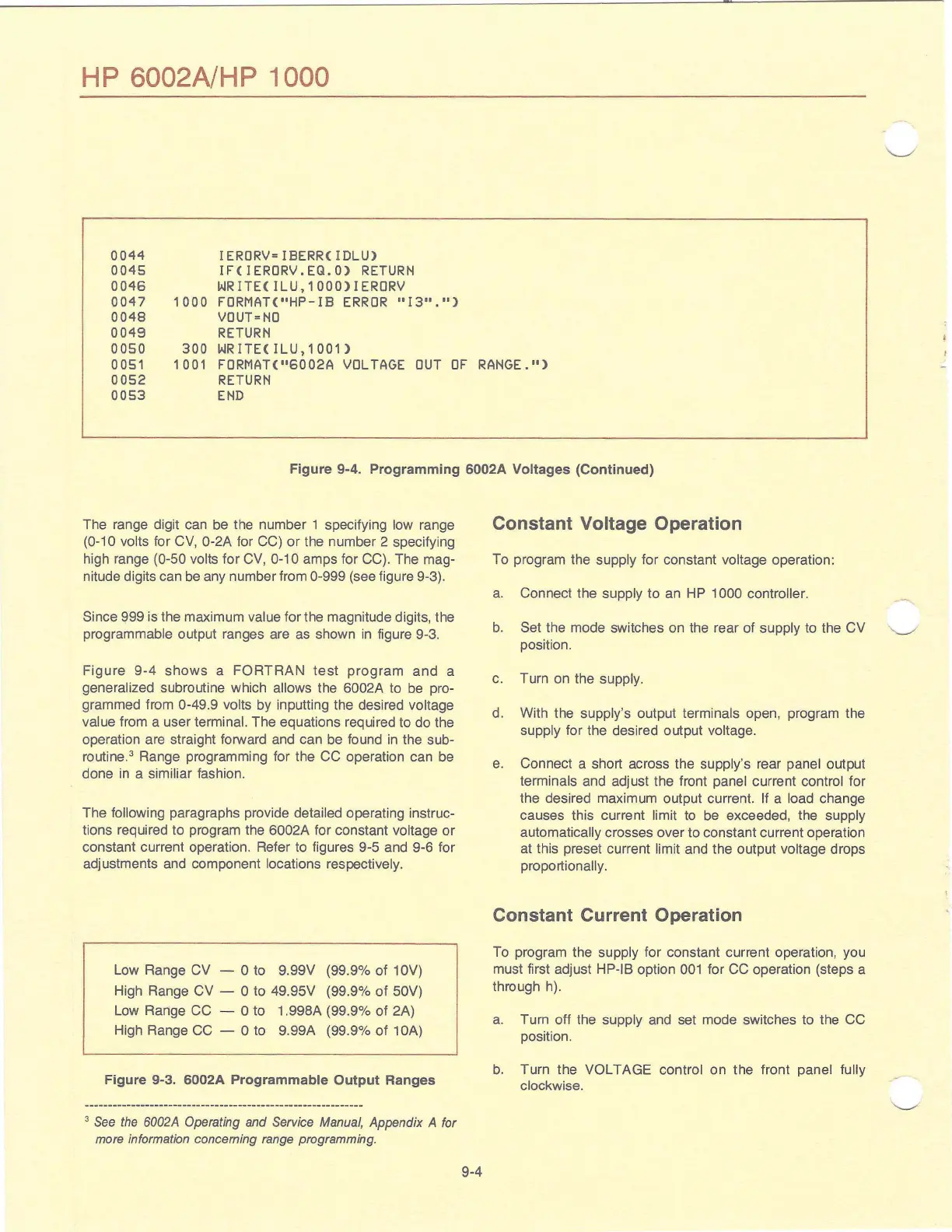 constant current operation. Refer to figures 9-5 and 9-6 for