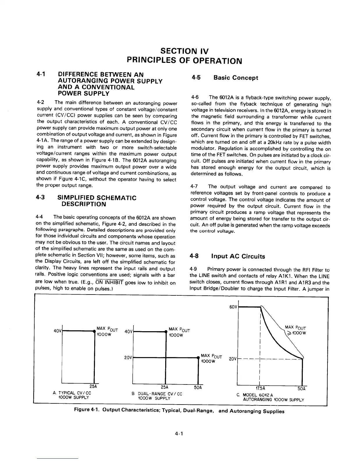 HP 6012A - Principles of Operation; Autoranging Power Supply Vs. Conventional Power Supply; Simplified Schematic Description; Input AC Circuits