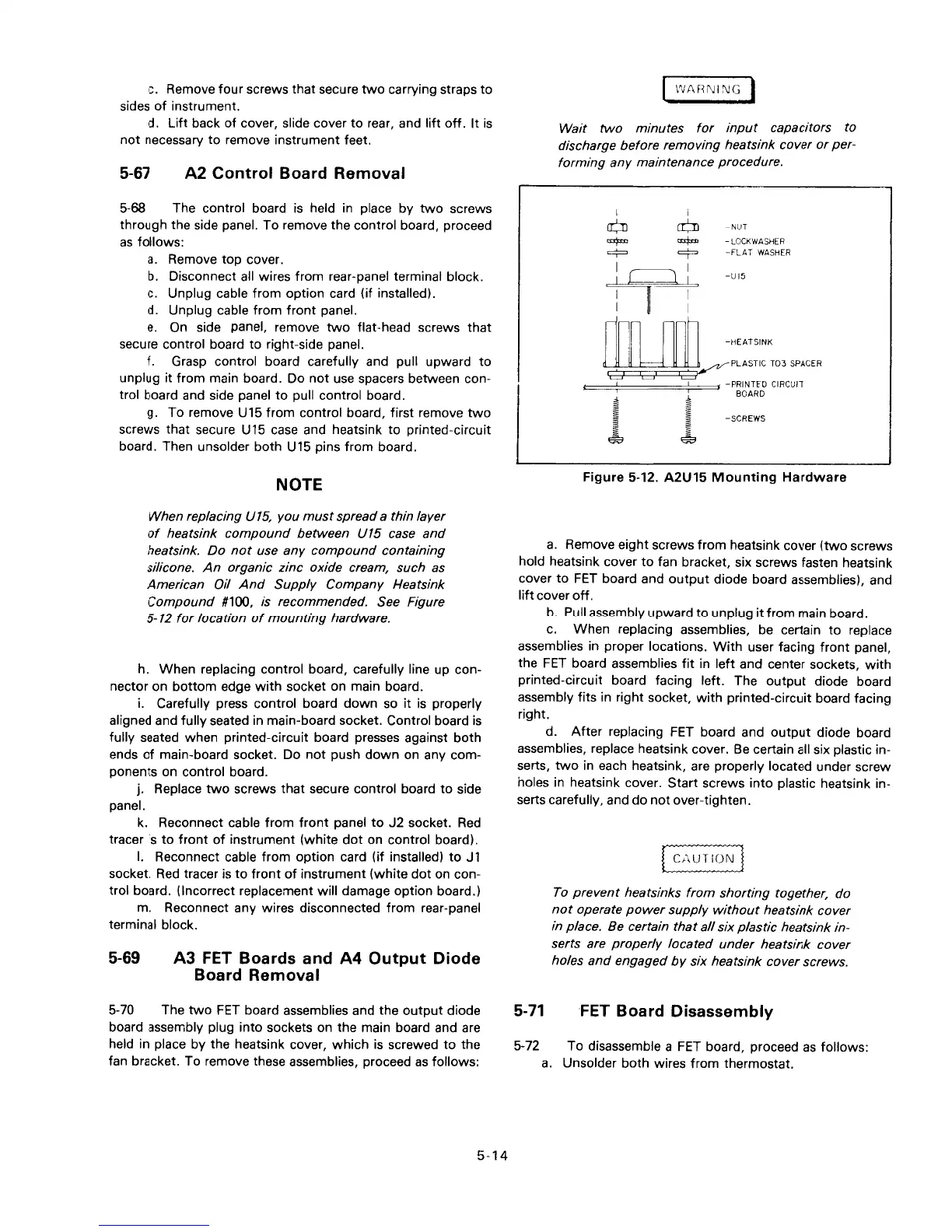 HP 6012A - A2 Control Board Removal; A3 FET Boards and A4 Output Diode Board Removal; FET Board Disassembly