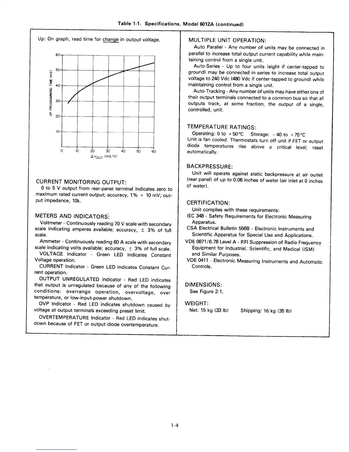 HP 6012A - Meters and Indicators; Multiple Unit Operation; Temperature Ratings; Backpressure