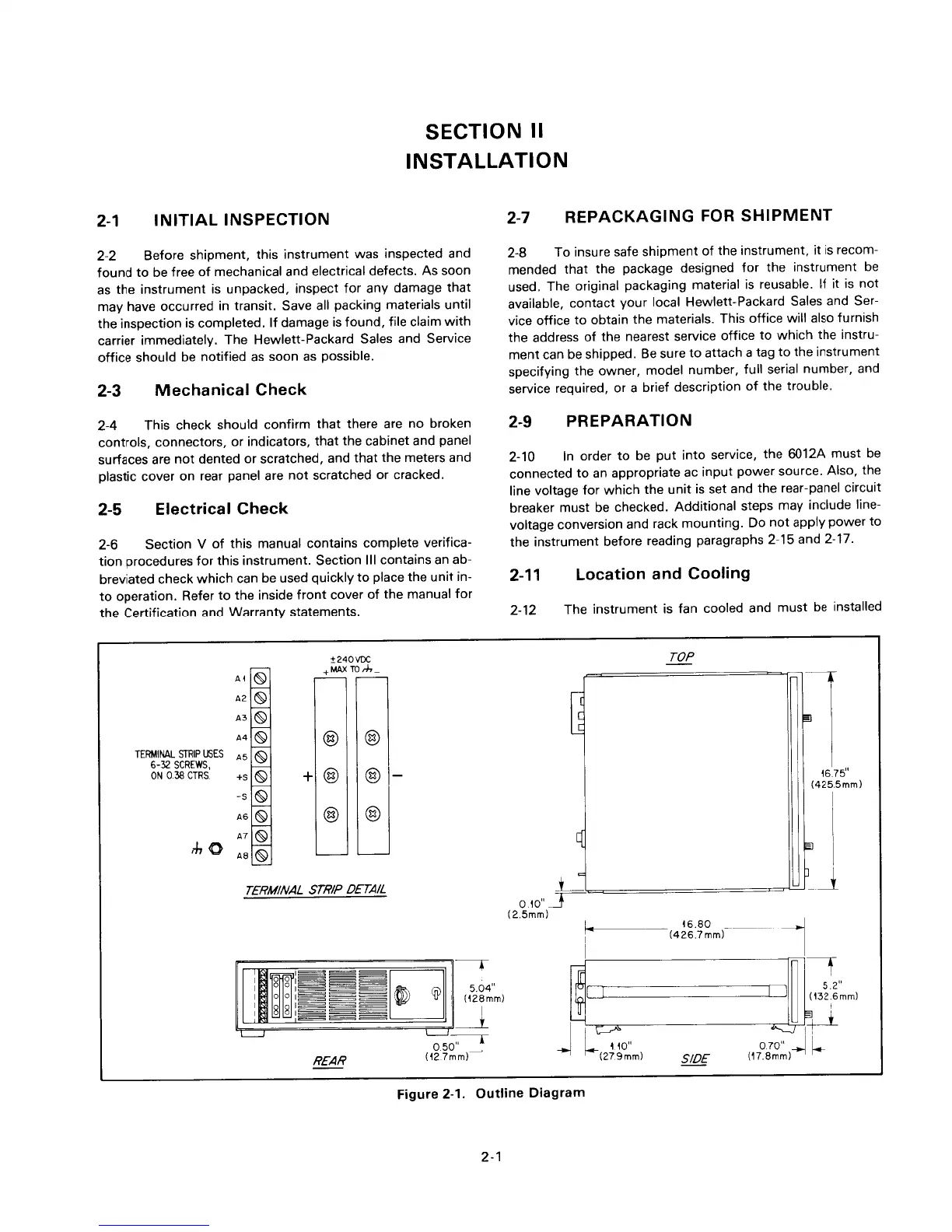 HP 6012A - Installation; Initial Inspection; Repackaging for Shipment; Location and Cooling