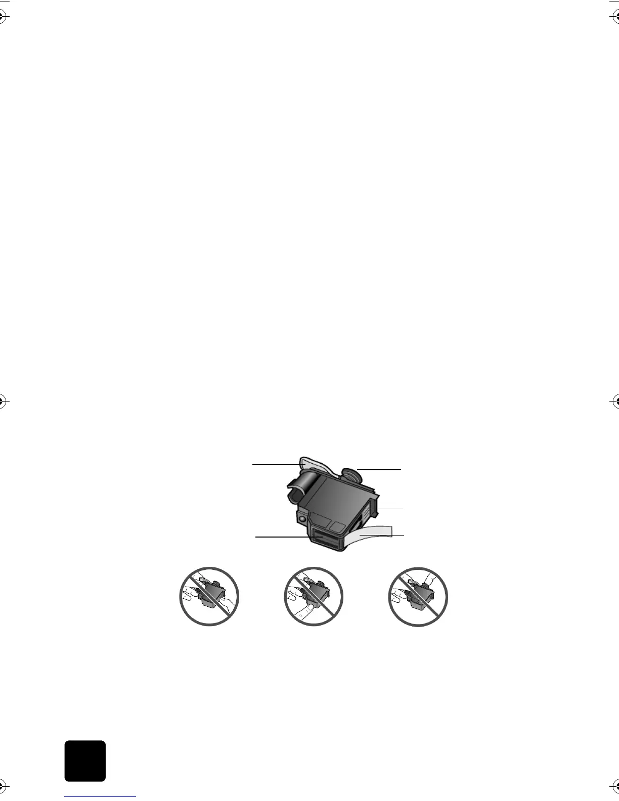 Do not touch the copper contacts, the ink nozzles, or the printhead tower.