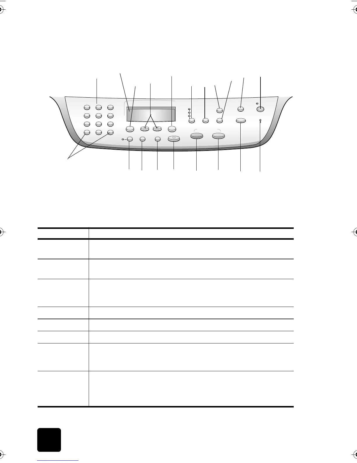1 Keypad: use to enter numbers such as the quantity of copies or