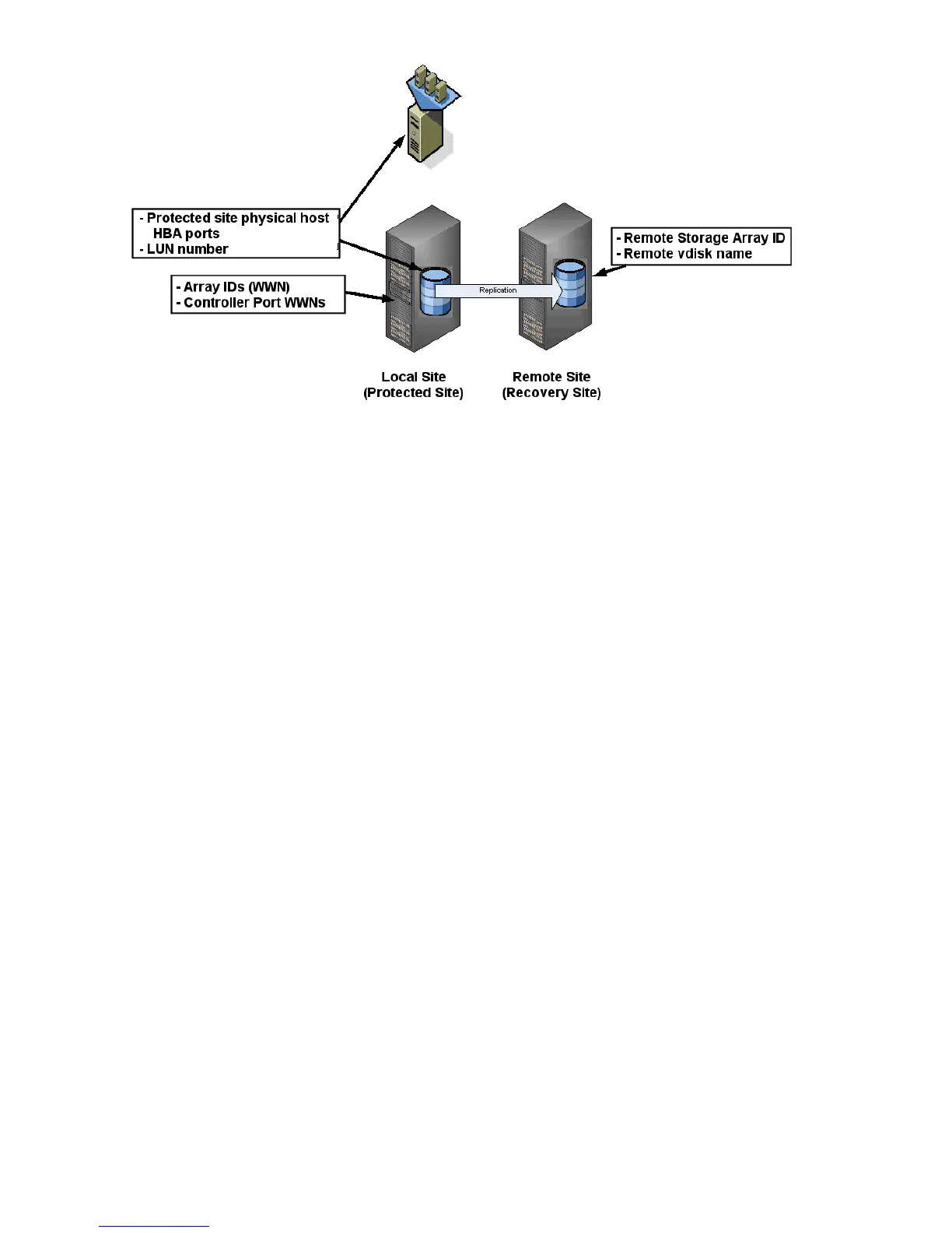 4. For each replicated vdisk found on the protected array, HP EVA Virtualization Adapter gathers